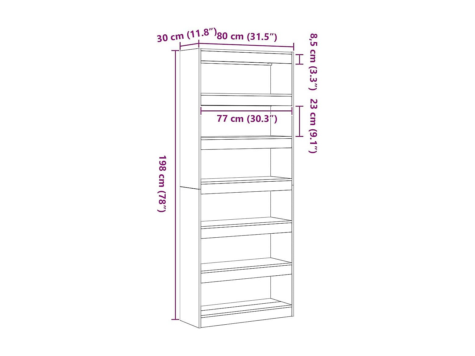 Bibliothèque Chêne fumé 80 x 30 x 198 cm Bois d'ingénierie