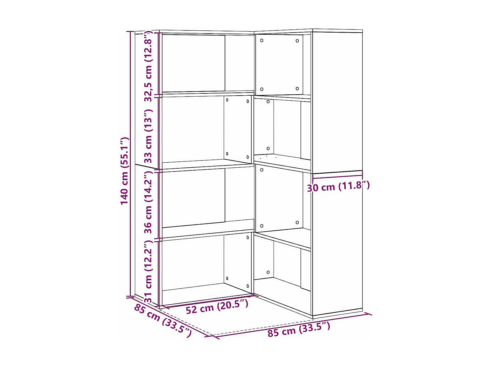Bibliothèque Chêne noir 140 x 30 x 140 cm Bois d'ingénierie