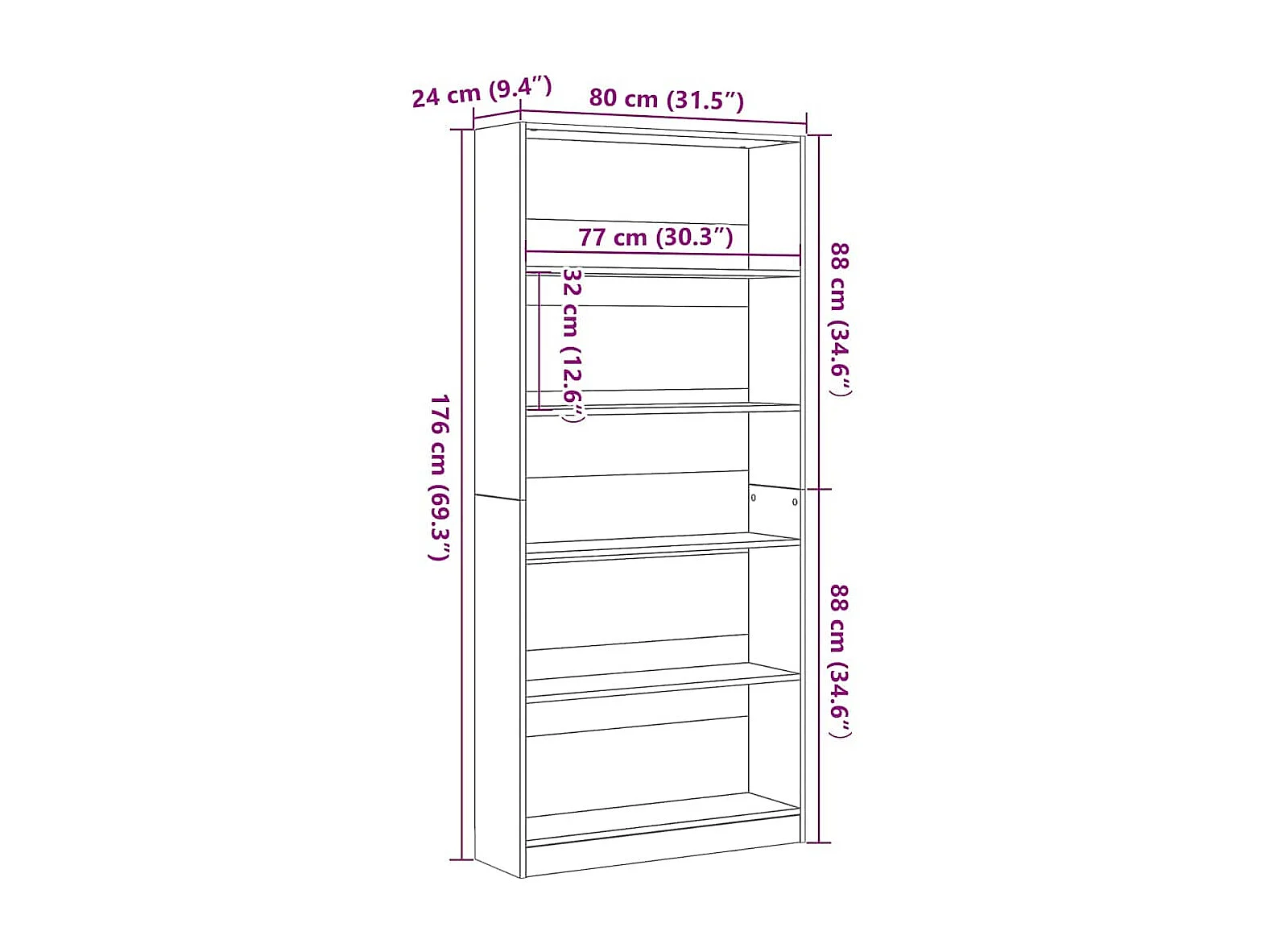 Bibliothèque chêne fumé 80x24x176 cm bois d'ingénierie