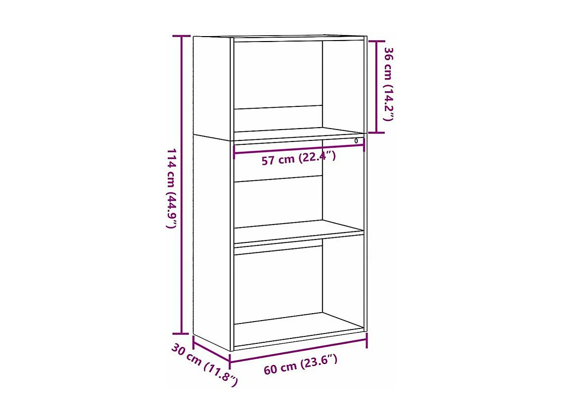 Bibliothèque à 3 niveaux chêne sonoma 60x30x60