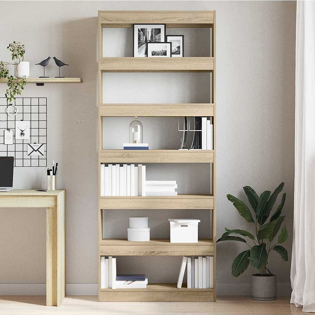 Bibliothèque-Séparateur de pièce Chêne fumé 80x30x198 cm OFR11158 BonneVie Meuble