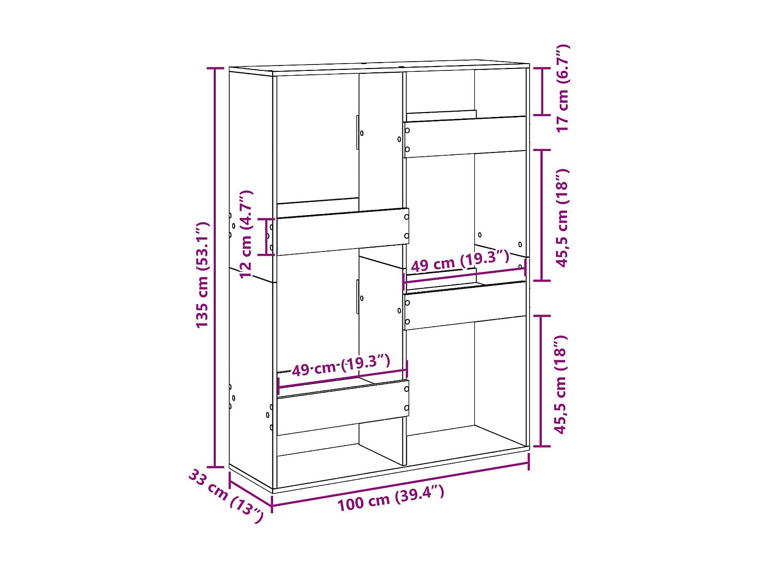 Bibliothèque / Cloison de séparation vieux bois 100x33x135cm bois d'ingénierie