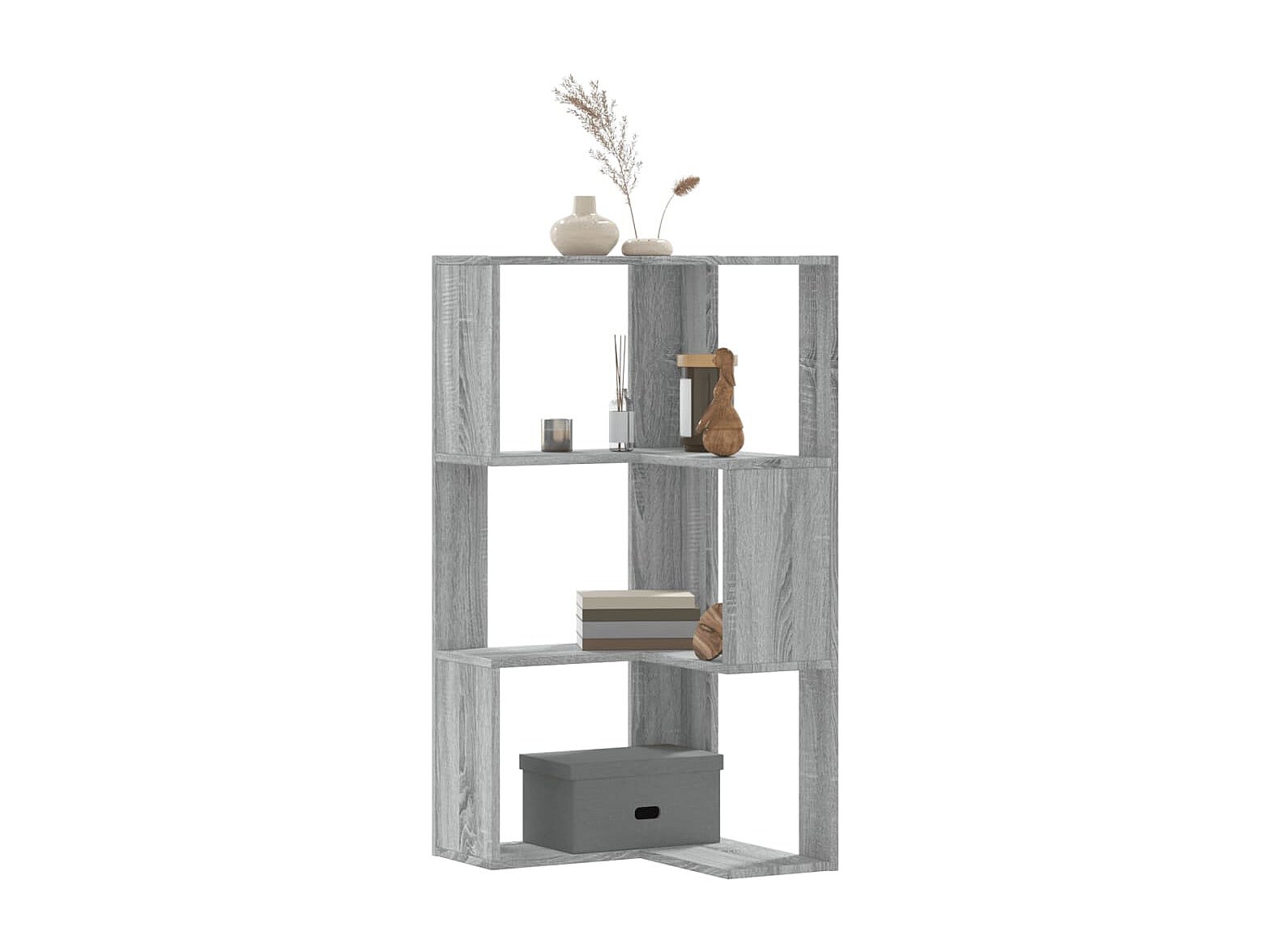 Bibliothèque d'angle à 3 niveaux sonoma gris bois d'ingénierie