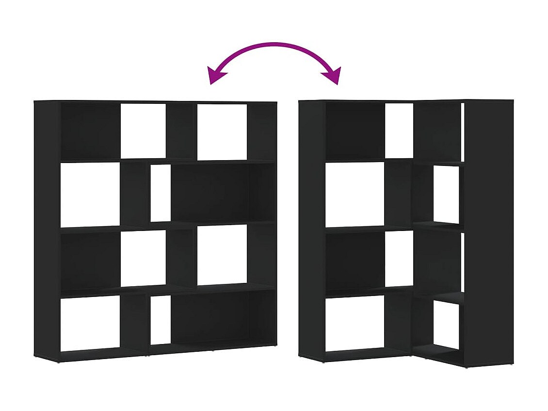 Bibliothèque d'angle à 4 niveaux noir bois d'ingénierie