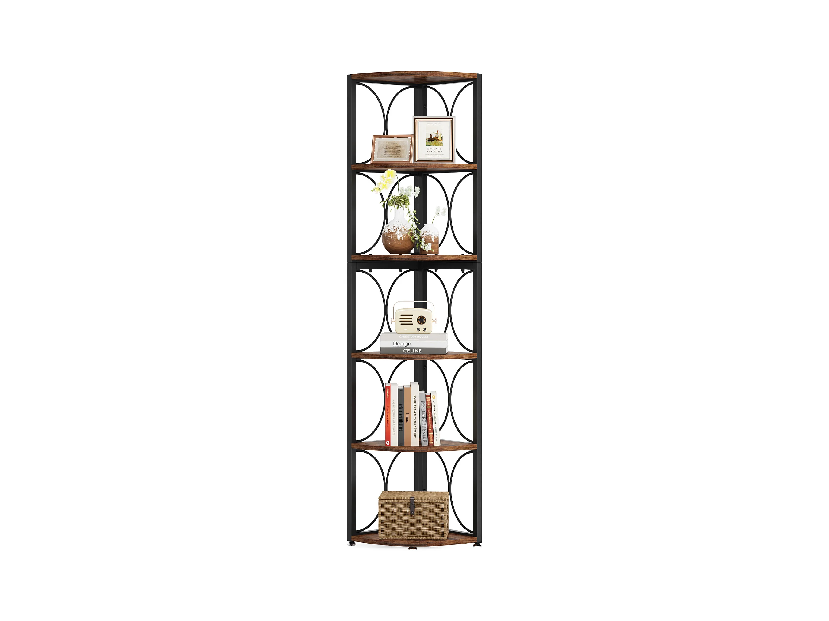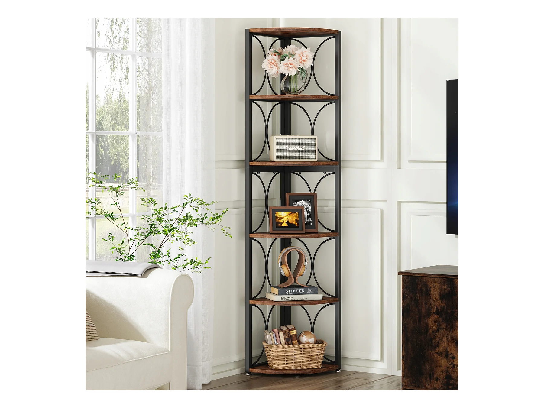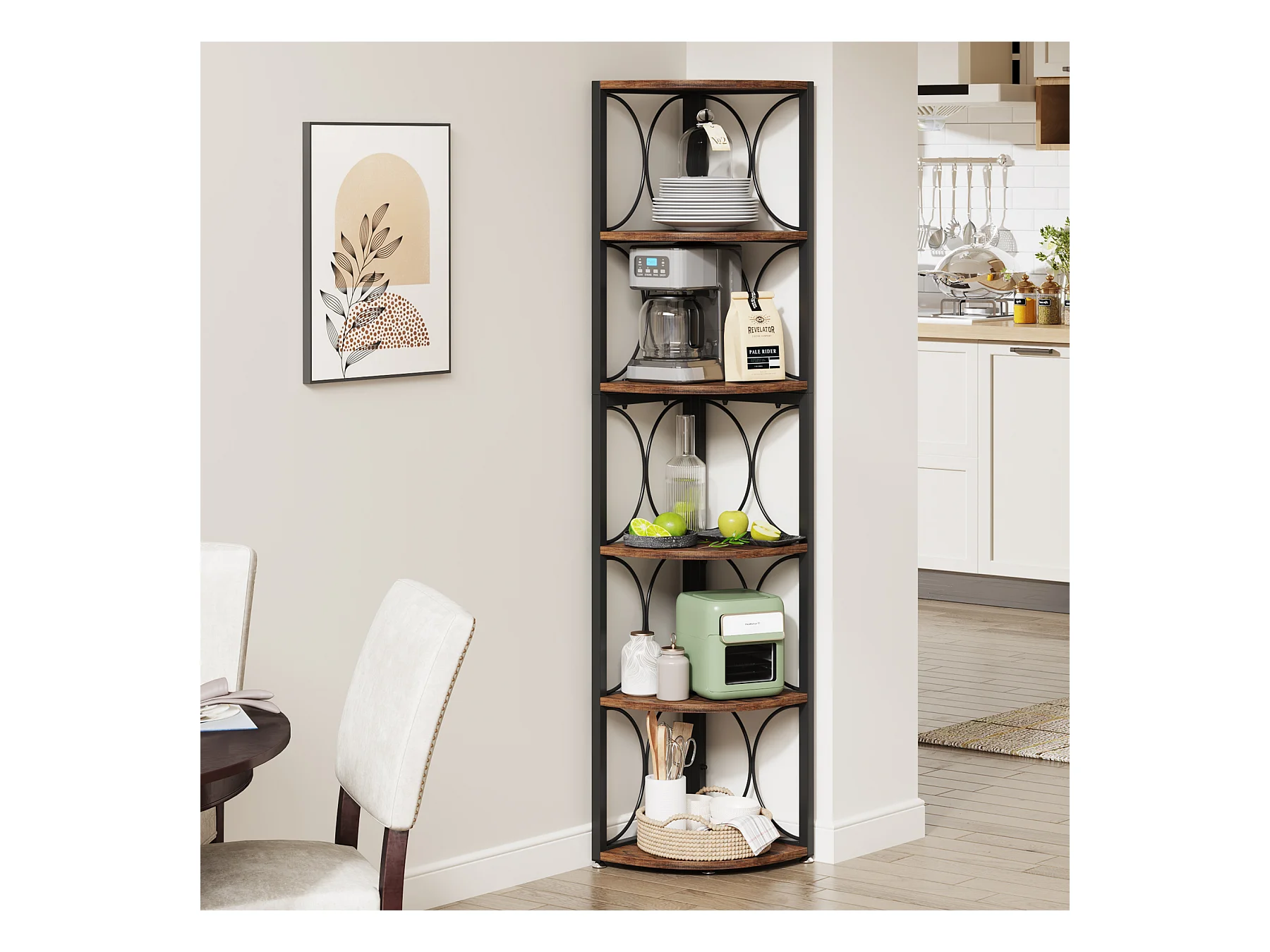 Étagère d'angle à 6 niveaux, étagère d'angle de 180 cm de haut avec bords arrondis, meuble de rangement d'angle de style campagnard