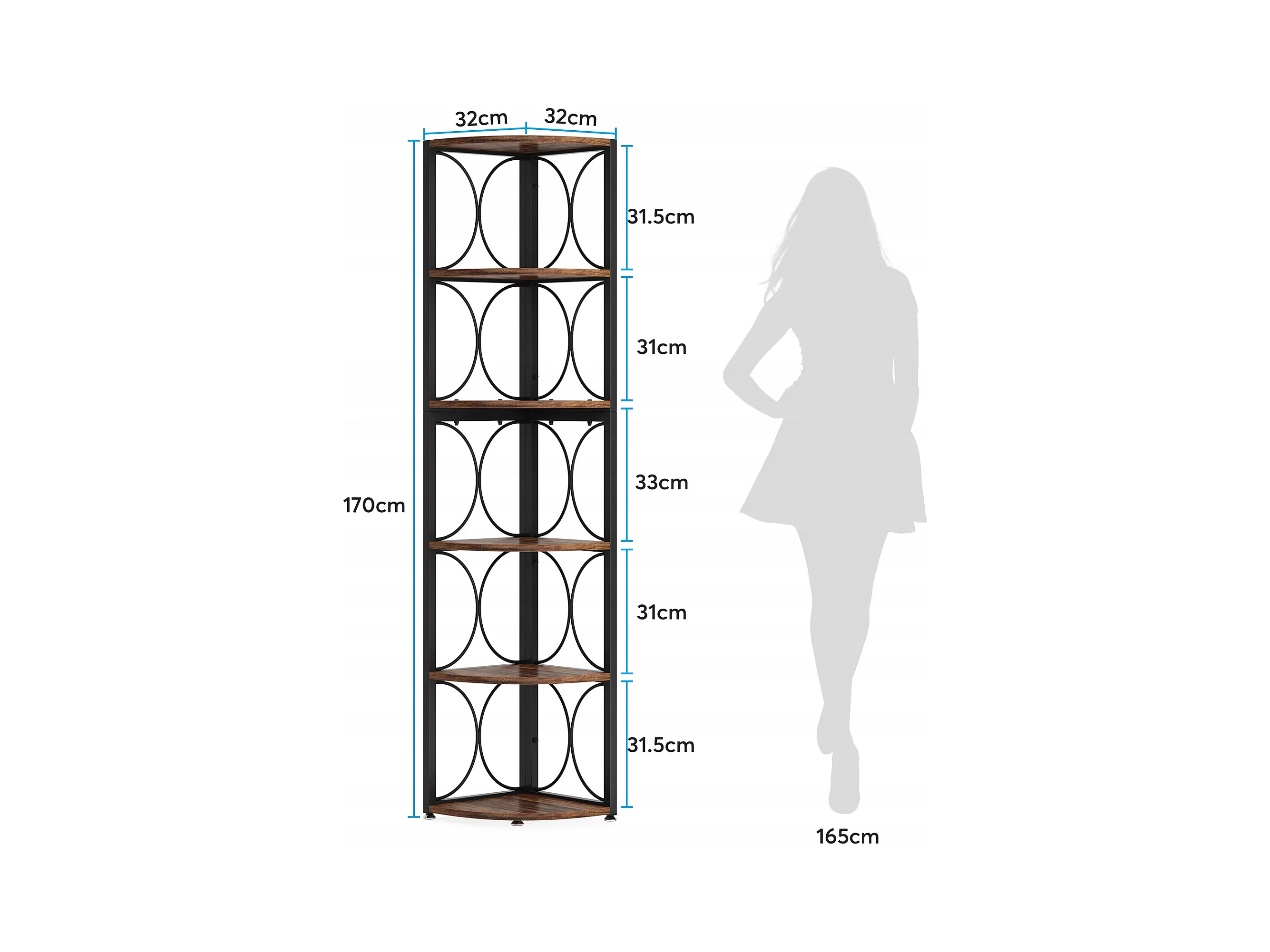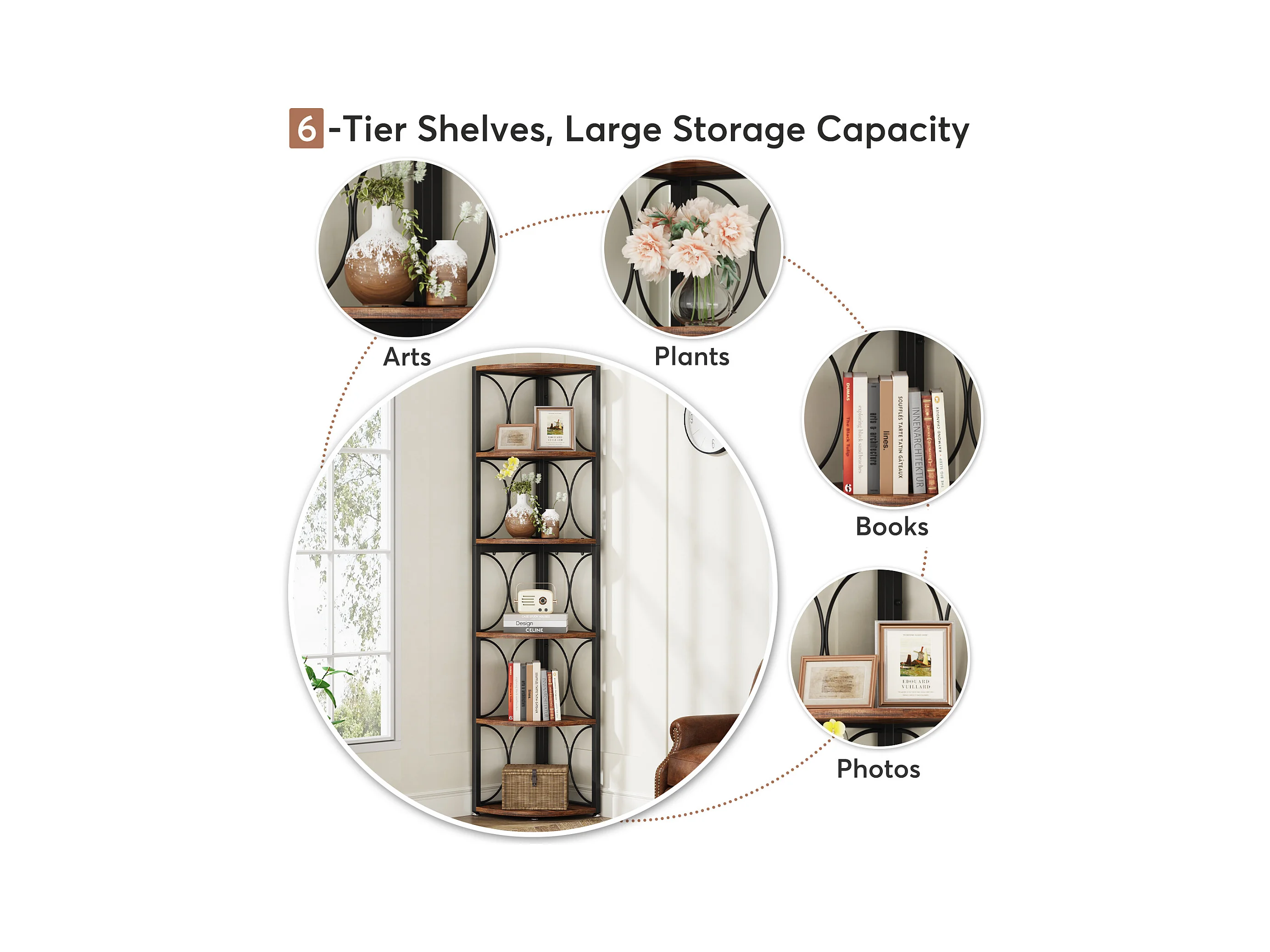 Bibliothèque d'angle de Rangement pour Salon, Cuisine, Bureau à Domicile, Étagère d'angle Rustique à 6 Niveaux,170cm de Haut, Petit Espace