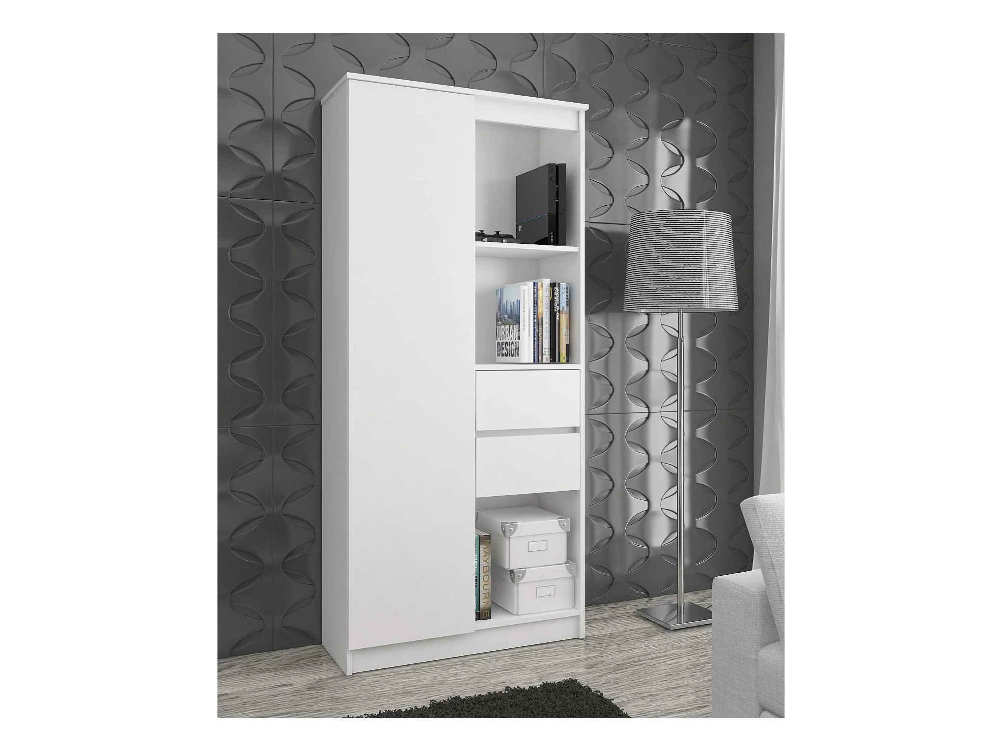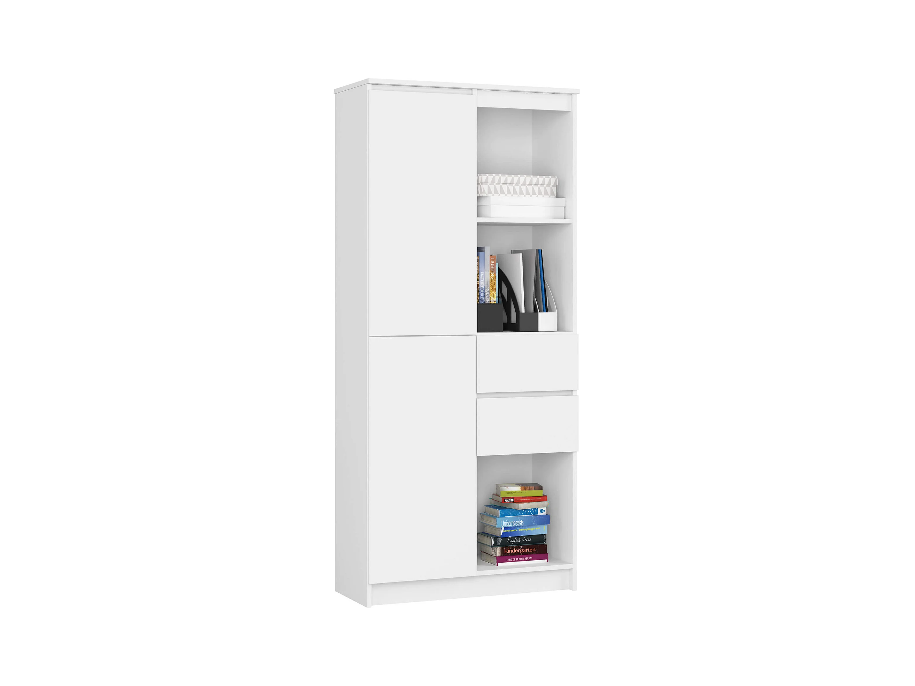 Bibliothèque de bureau AKORD R15 Blanche 80 cm 1 porte 2 tiroirs façade Blanche mat 7 étagères 80x35x180 cm