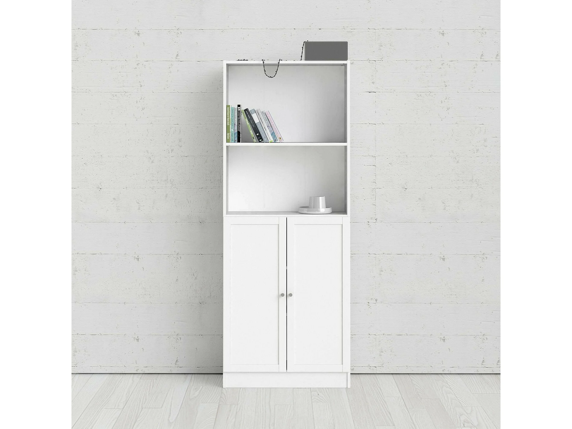 Bibliothèque Dsoffrid, Etagère de bureau, Porte-livre mobile, Librairie, 79x28 h203 cm, Blanc