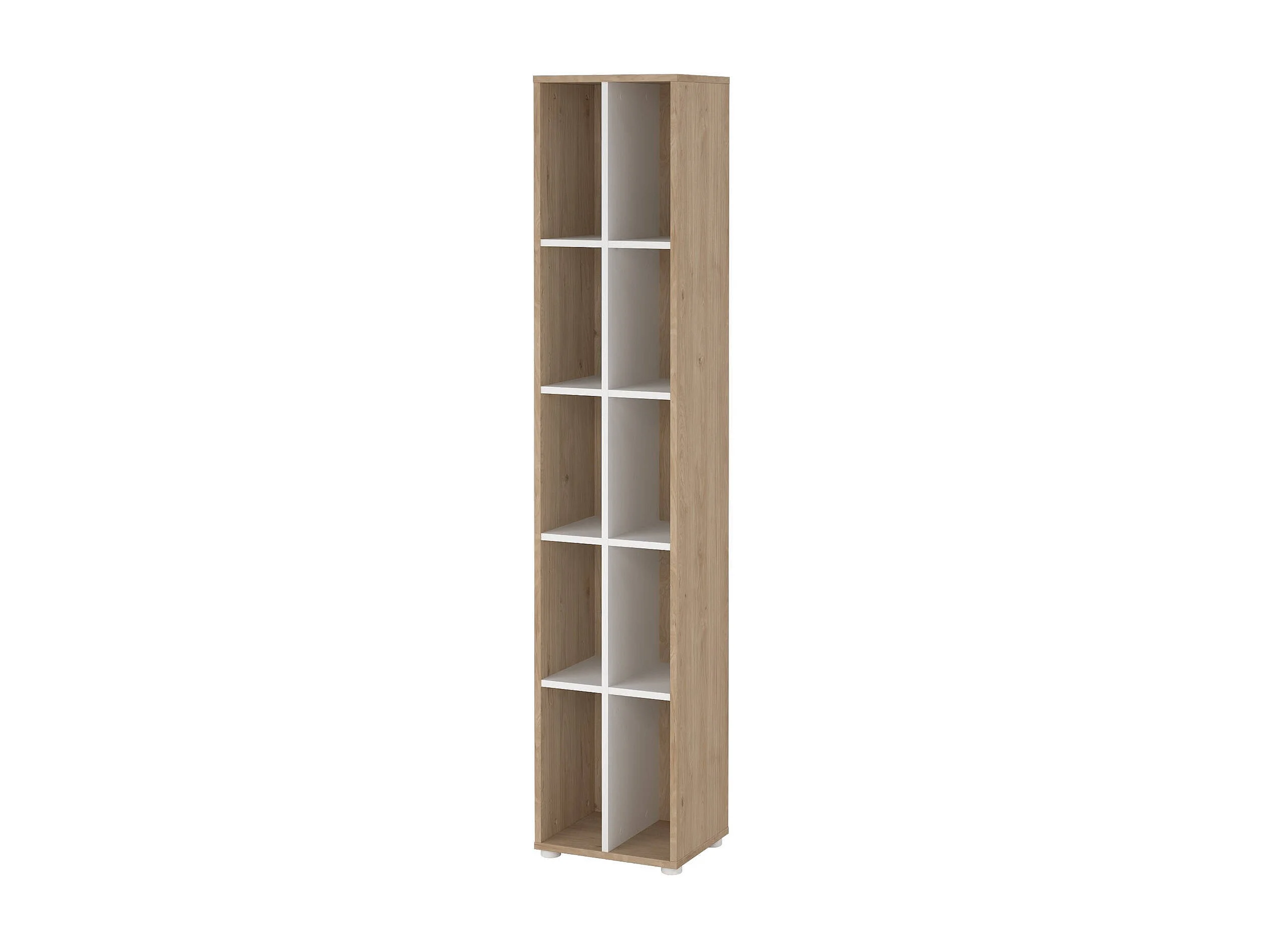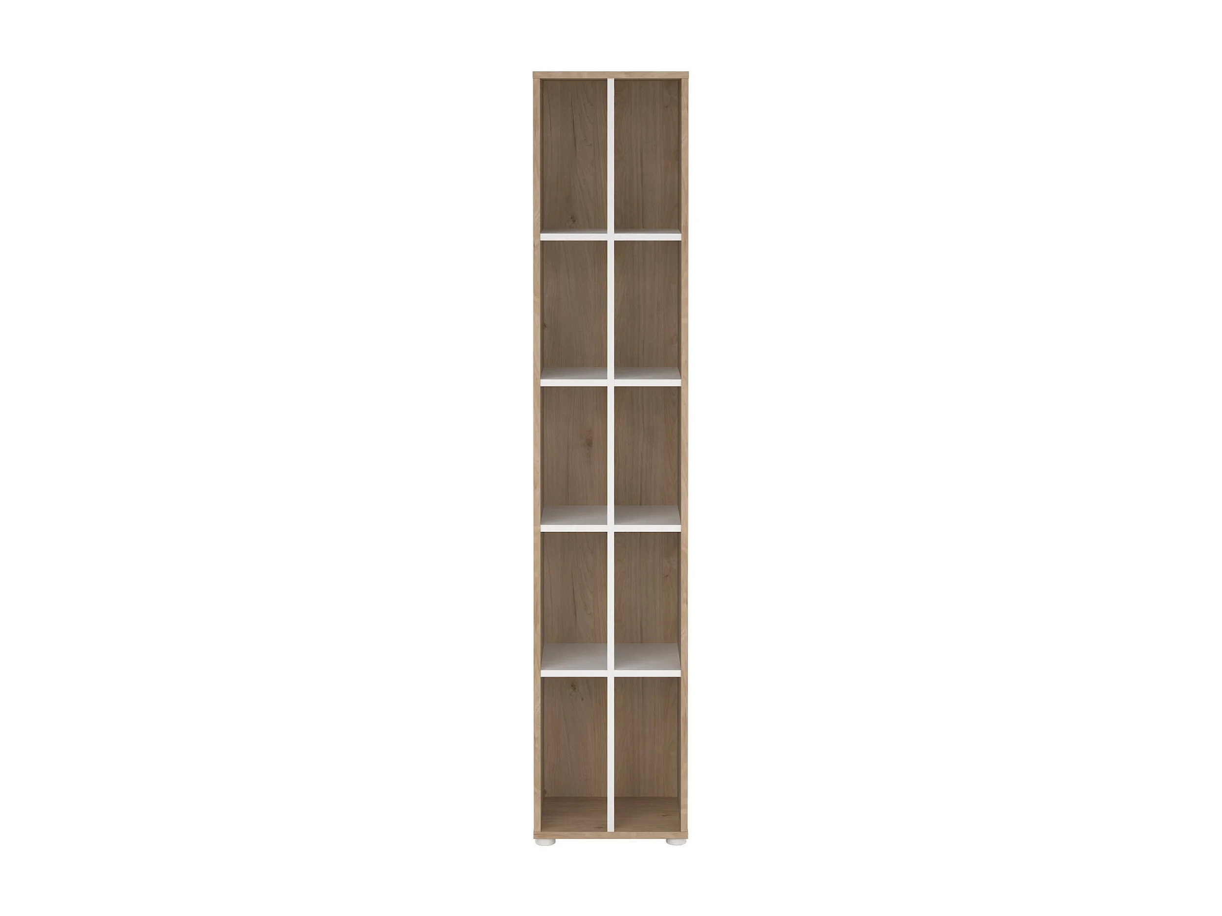Bibliothèque Dtedesc, Etagère de bureau, Porte-livre mobile, Librairie, 41x34 h205 cm, Chêne clair et Blanc