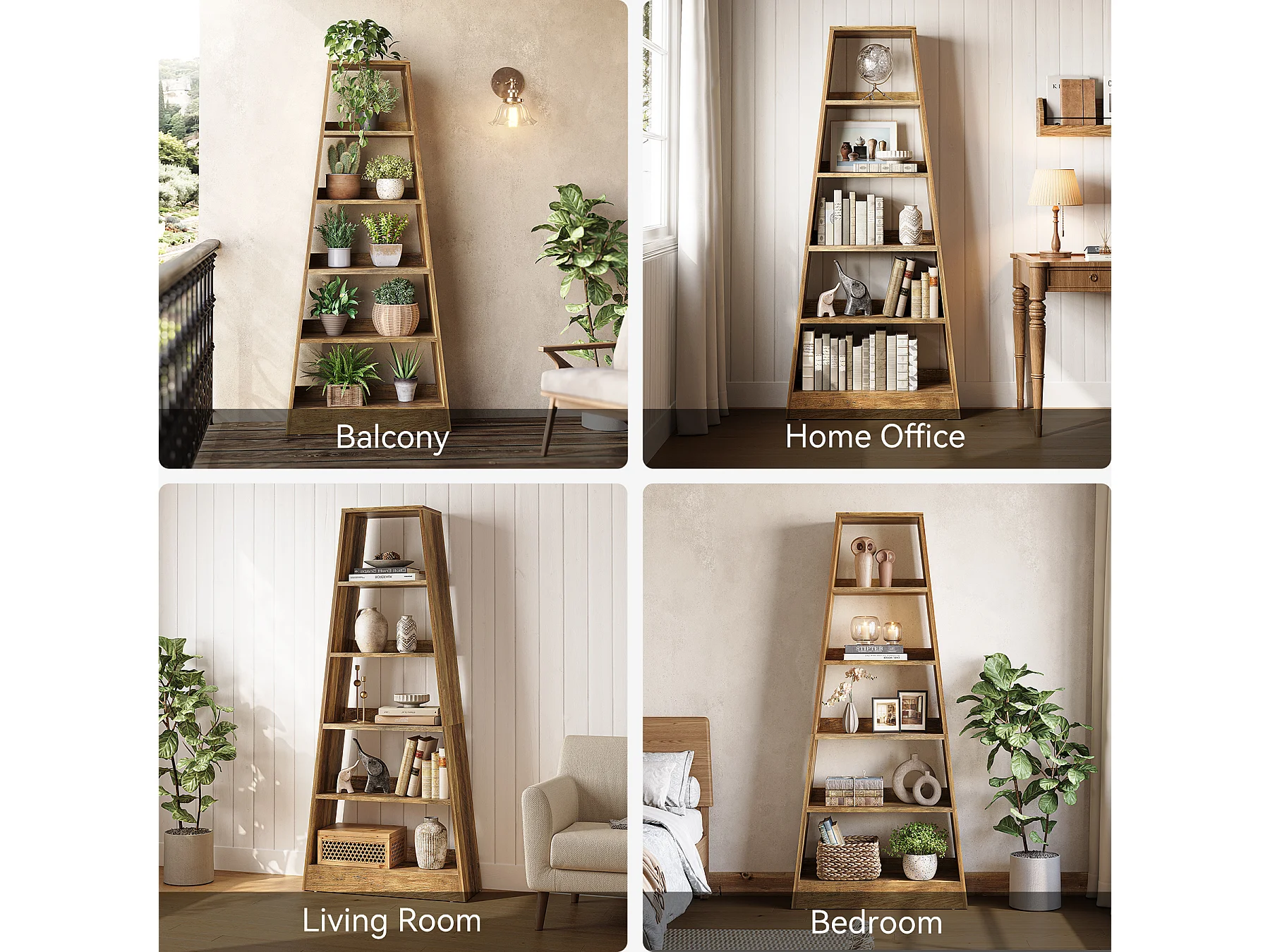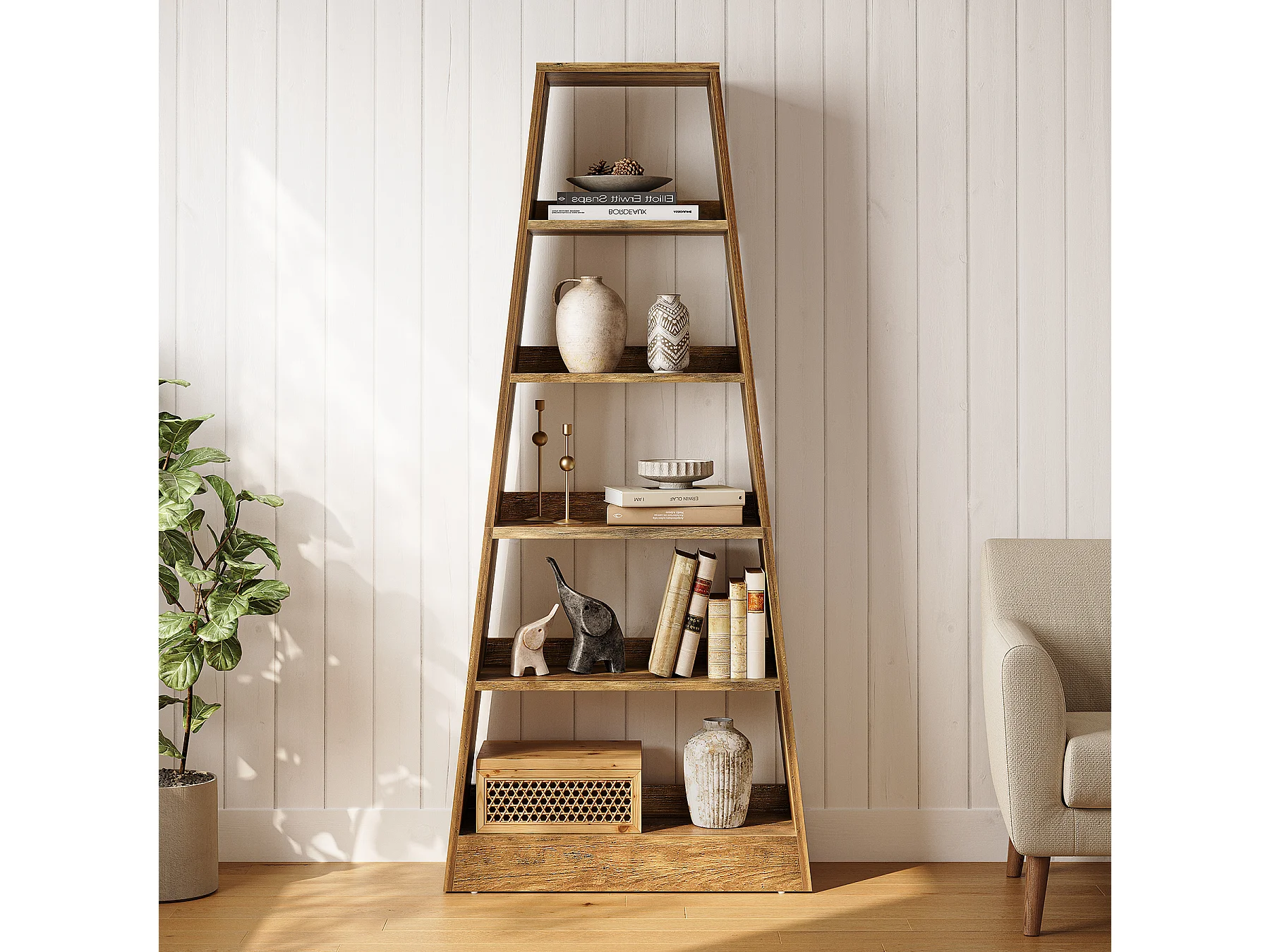 Bibliothèque échelle de style ferme de 181 cm, étagère de rangement à 6 niveaux pour salon, bureau, chambre