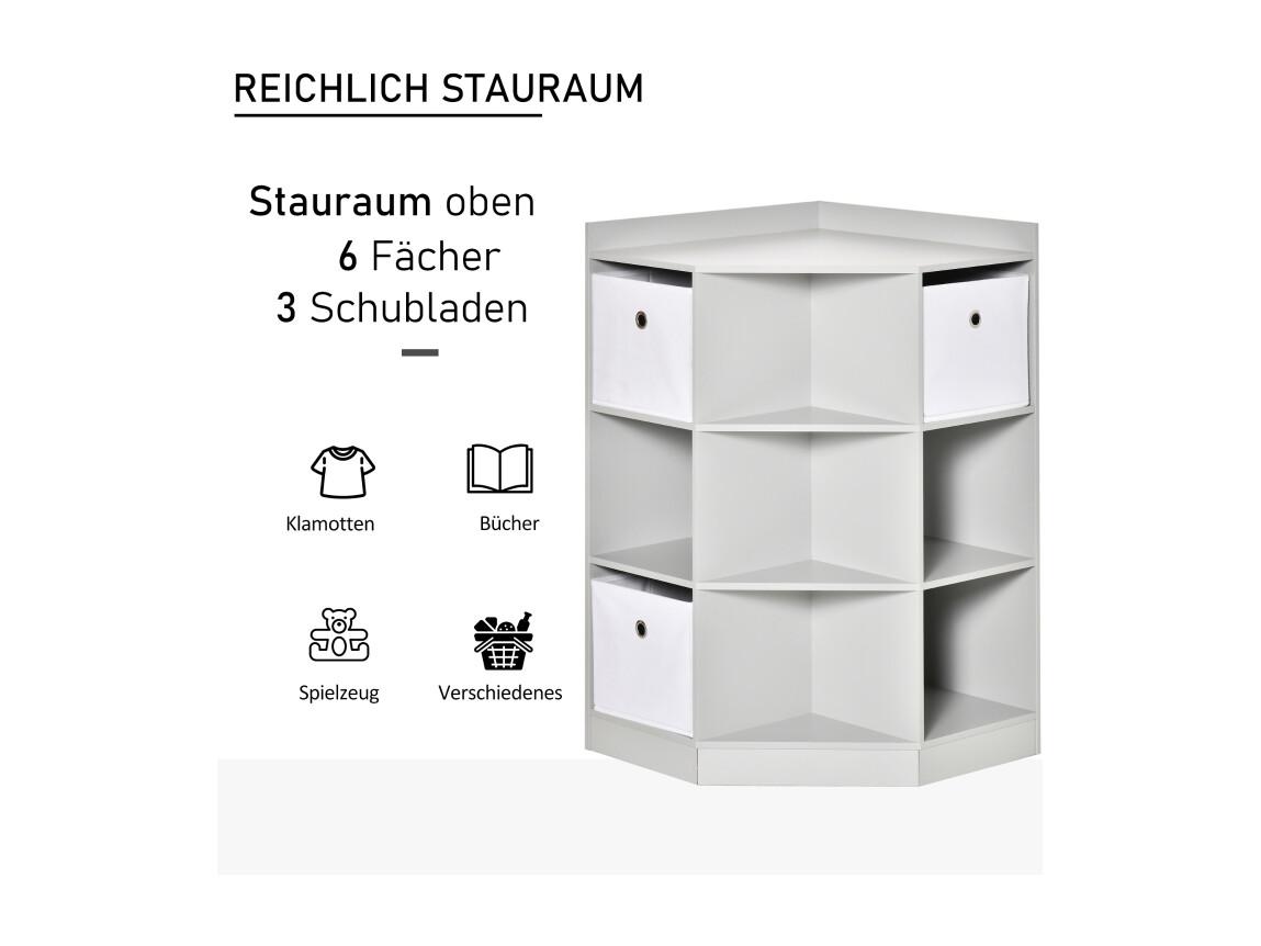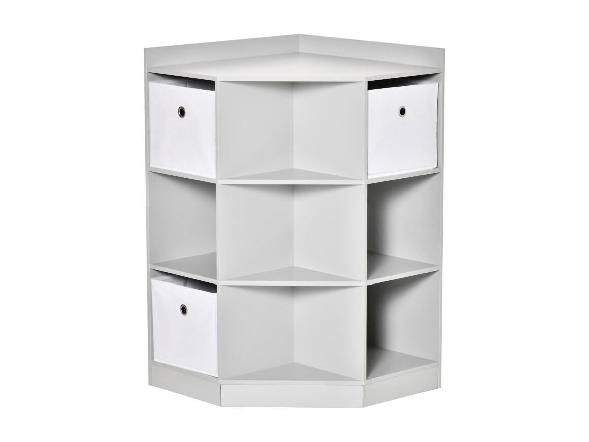 Bibliothèque enfant d'angle avec 3 boîtes de rangement, étagères et tiroir, en MDF, gris (57.4x57.4x94 cm)