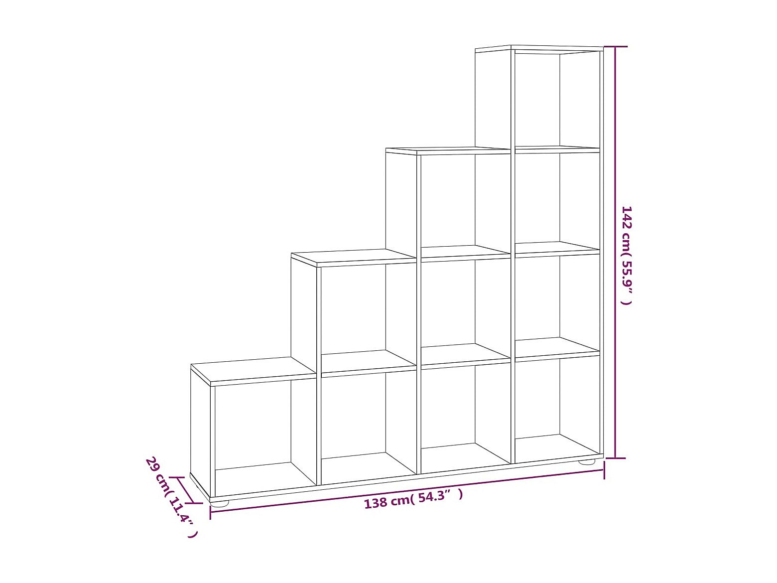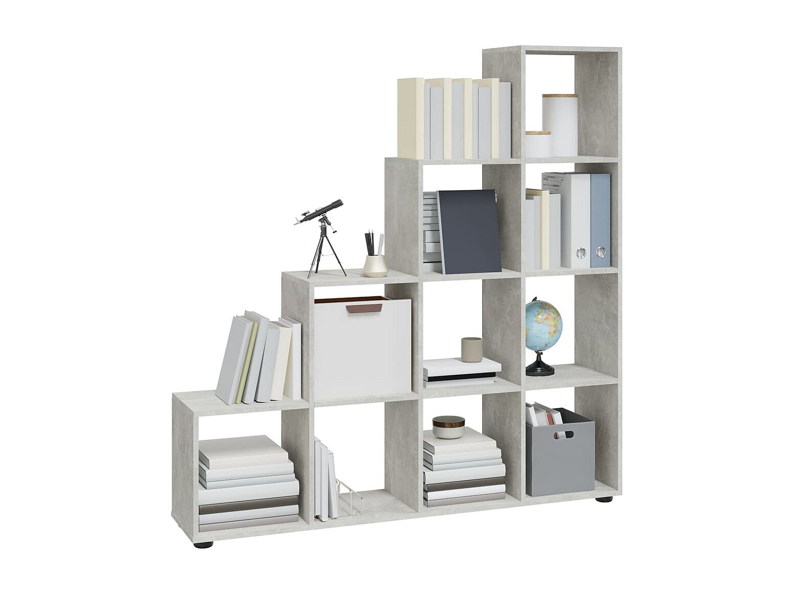 Bibliothèque escalier Gris béton 142 cm Bois d'ingénierie