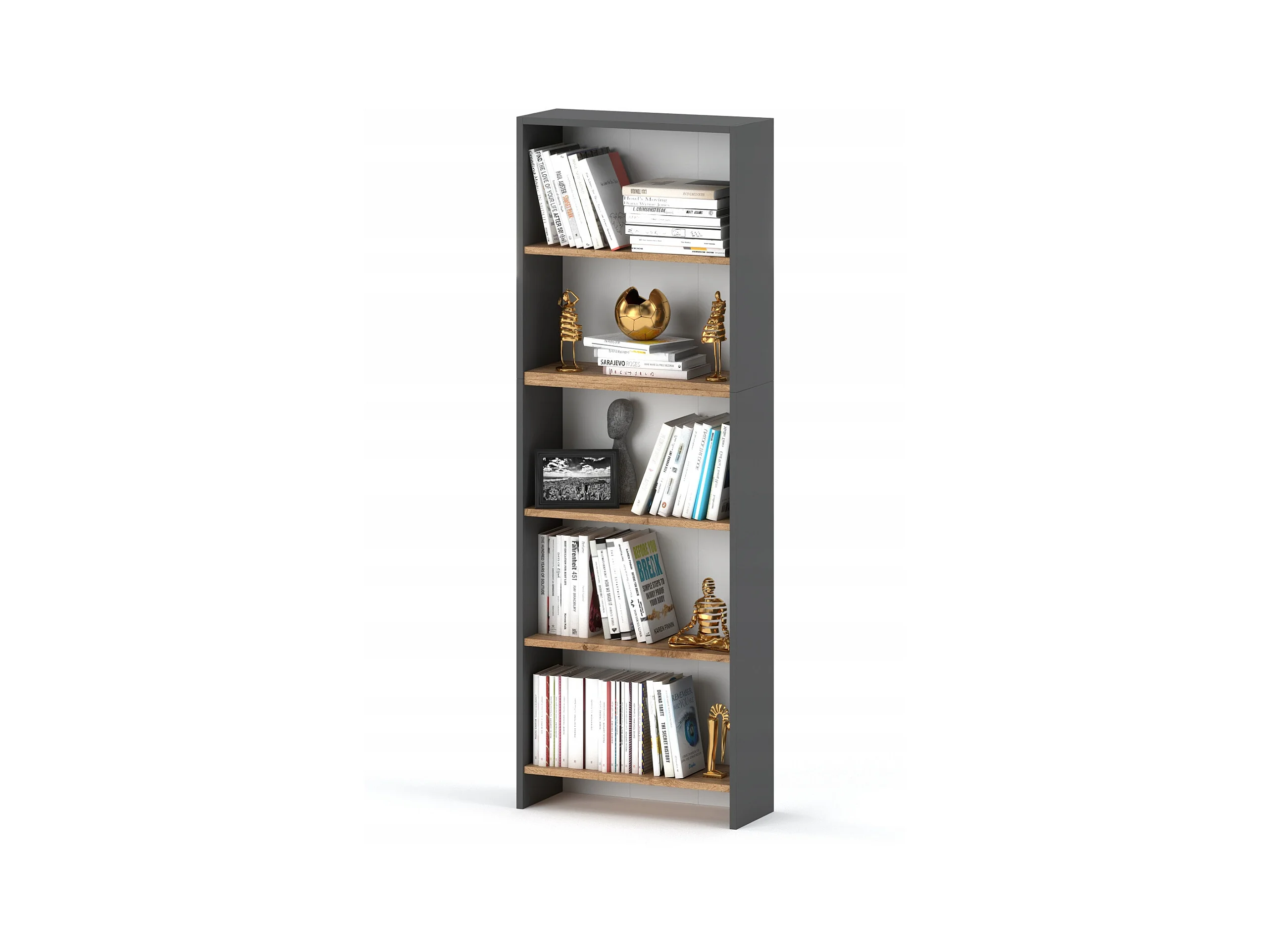Bibliothèque -Étagère multifonction Gris + Chêne Wotan 5 niveaux 60X30x189cm – Pour livres, jouets et accessoires de bureau