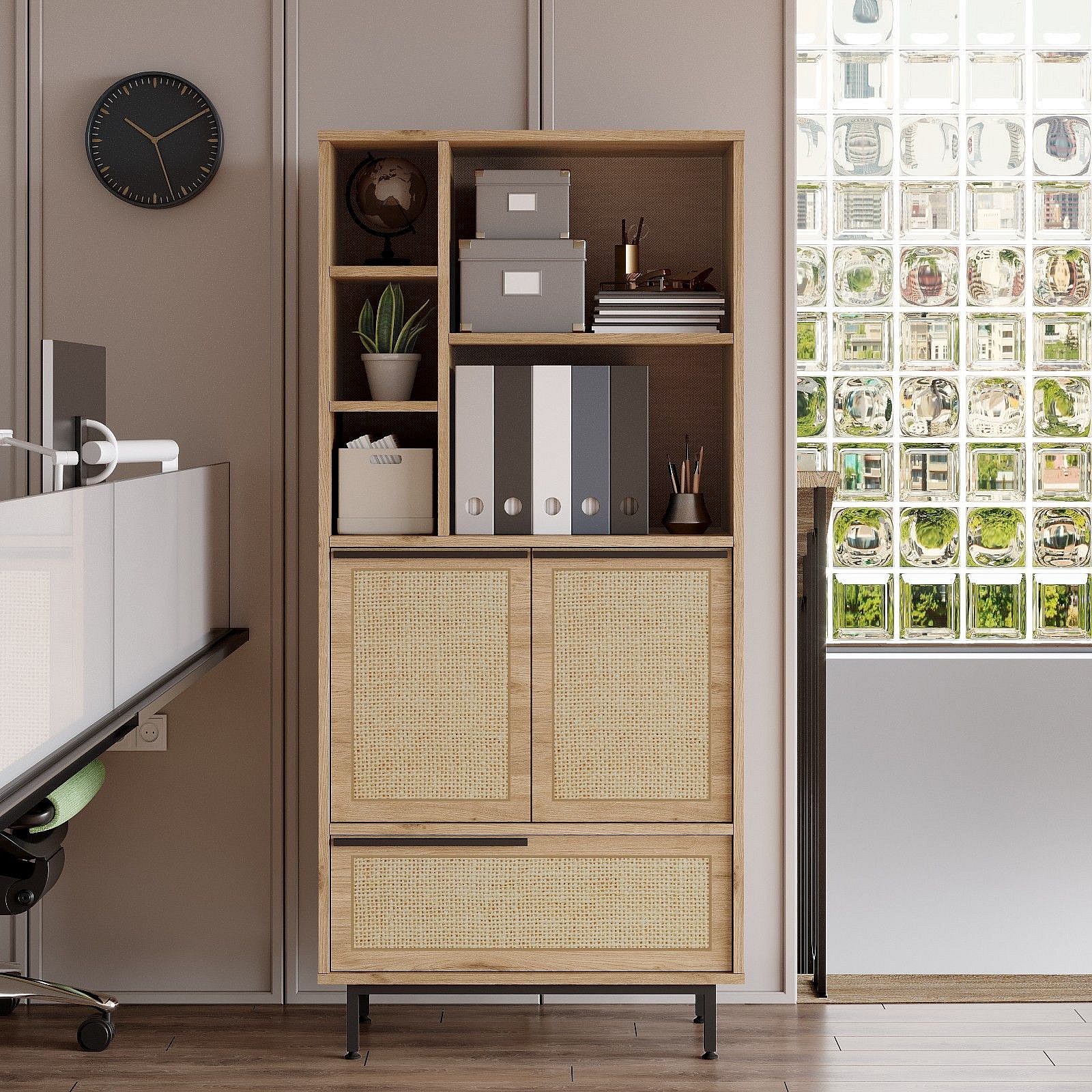 Bibliothèque Evelis L75cm Bois et Rotin clair