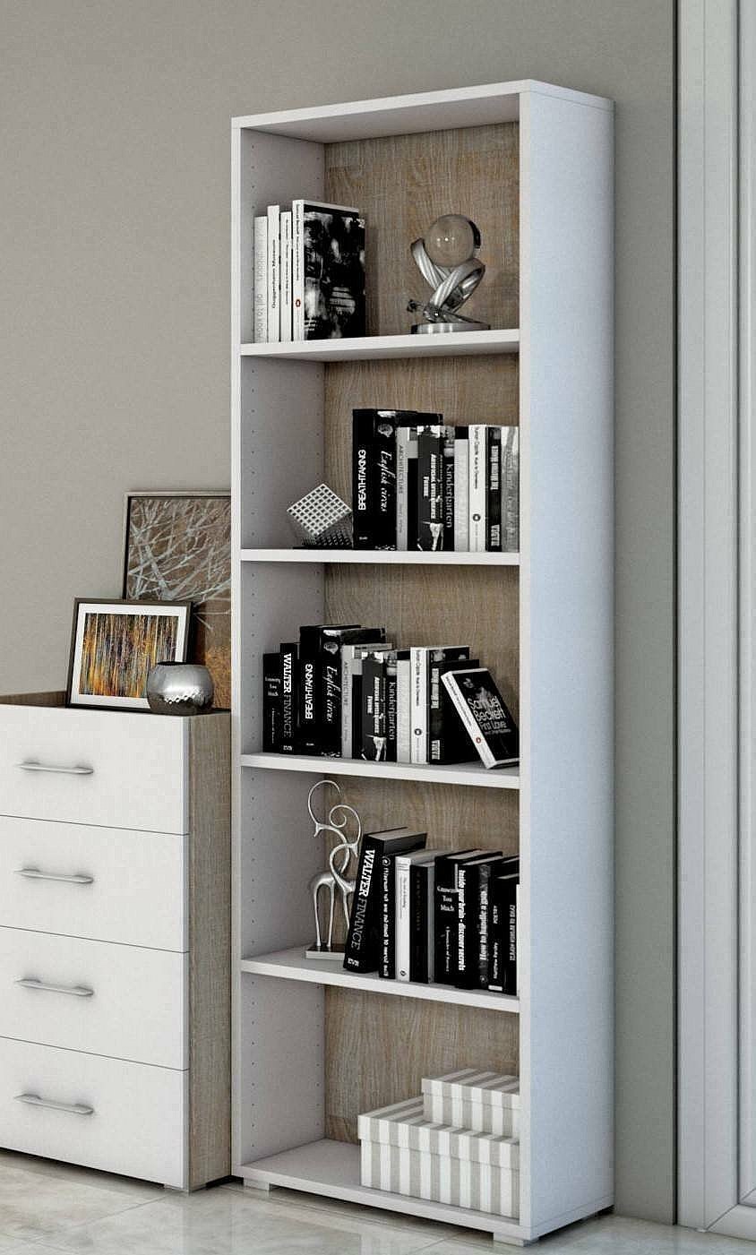 Bibliothèque Girasole, Bibliothèque avec 4 étagères réglables, Étagère à livres, Élément mural avec étagères, 100% Made in Italy, 60x30h195 cm, Blanc et Chêne