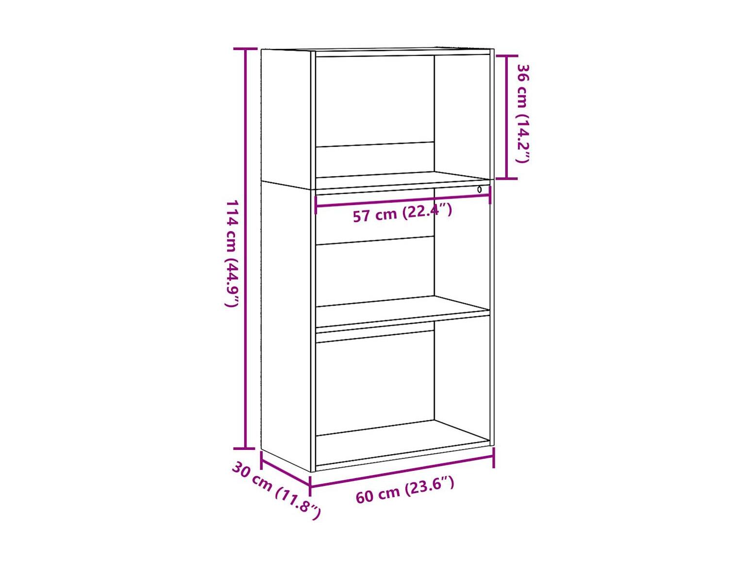 Bibliothèque à 3 niveaux gris béton 60x30x120cm bois ingénierie