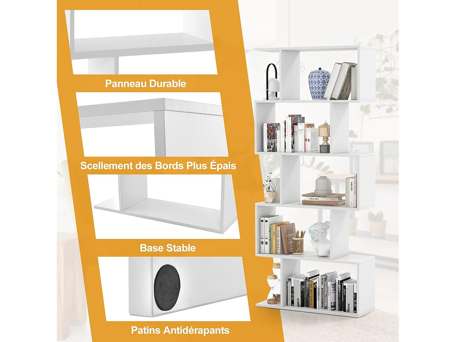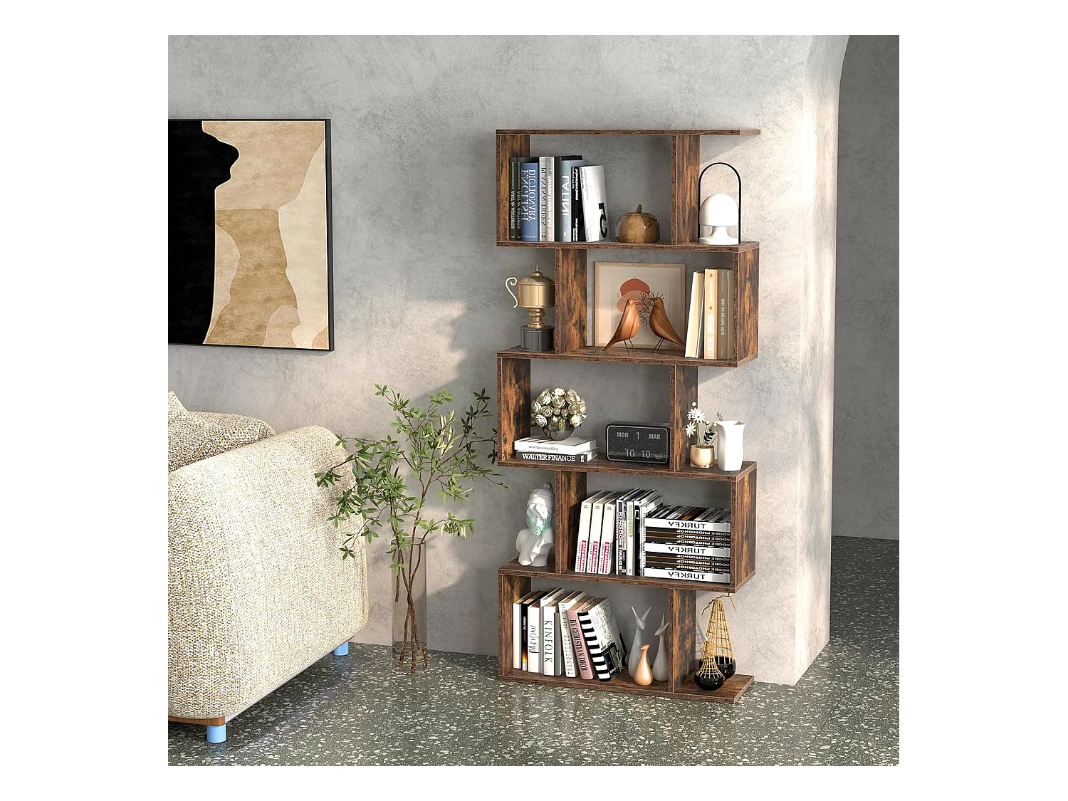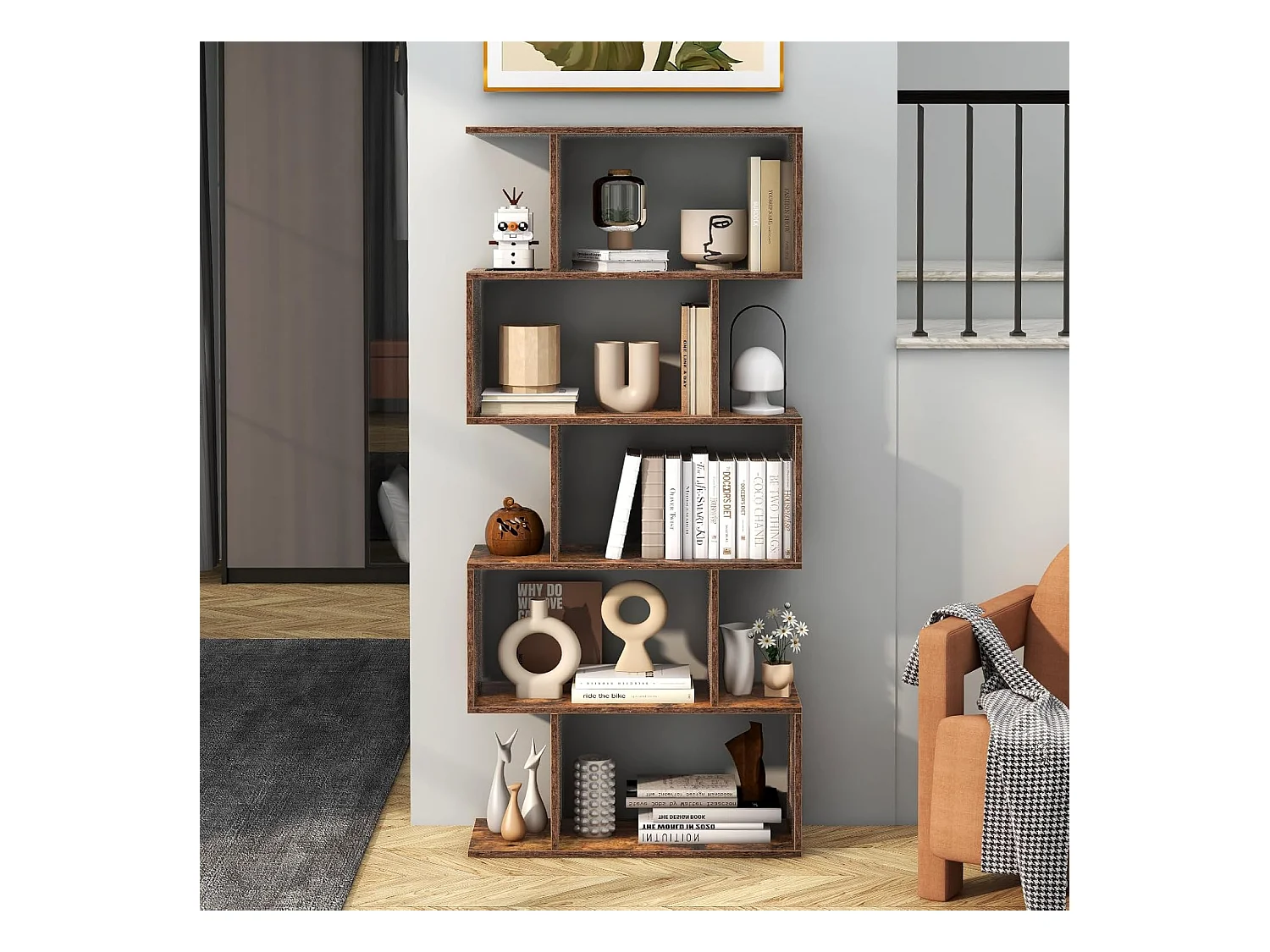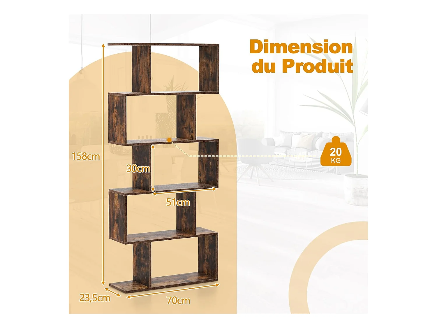 Bibliothèque Industrielle en Forme de S, Étagère à 5 Niveaux, Meuble de Rangement avec Anti-basculement, 70 x 23,5 x 158 cm, pour Salon, Chambre, Bureau, Marron Rustique