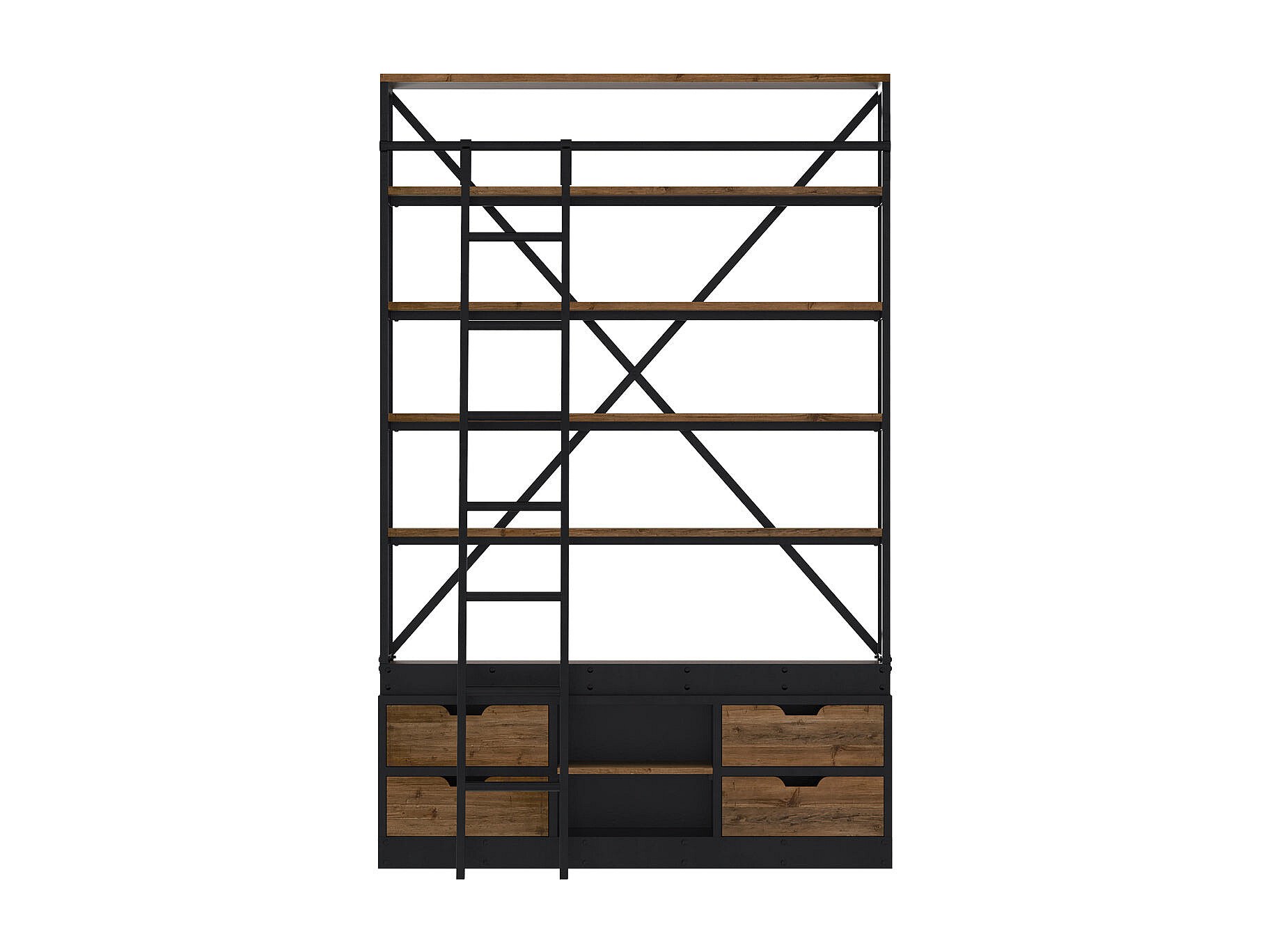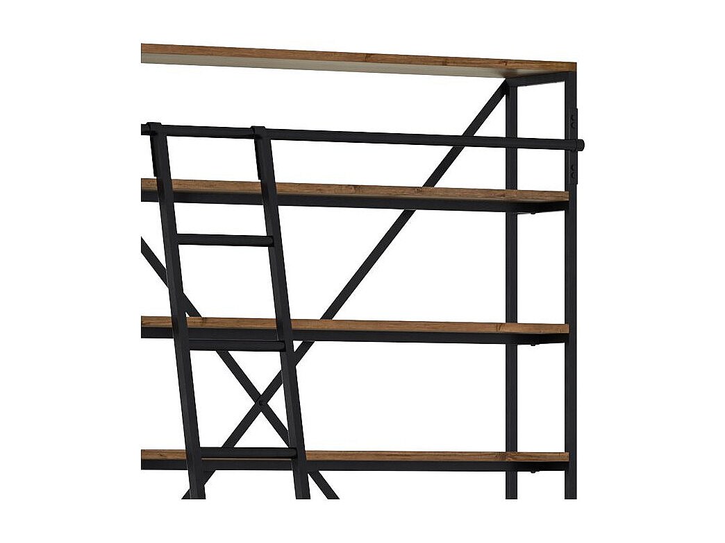 Bibliothèque 160 cm en bois et métal avec échelle, 4 tiroirs - Kasi