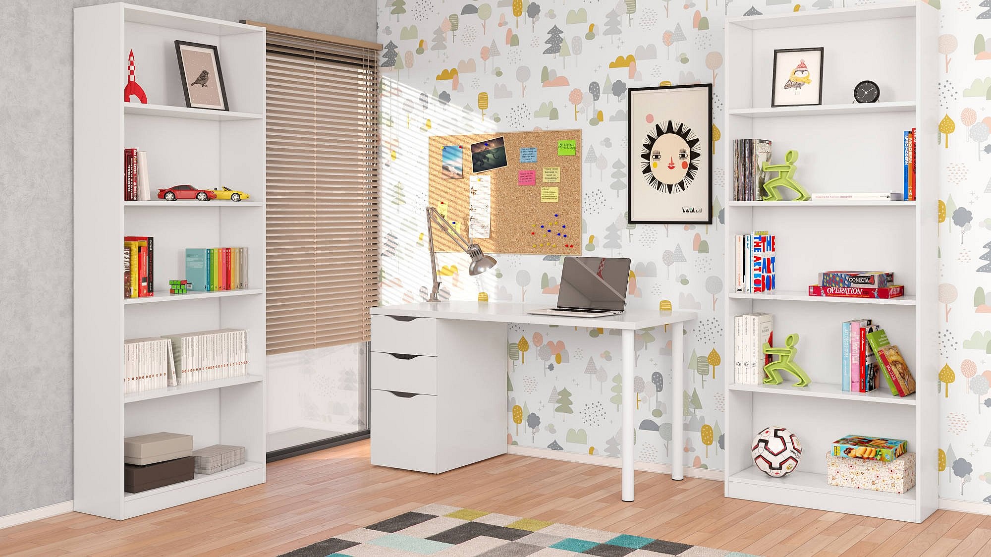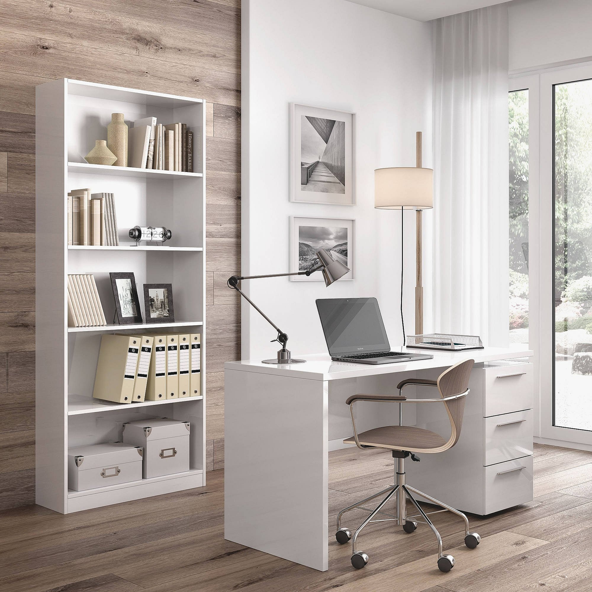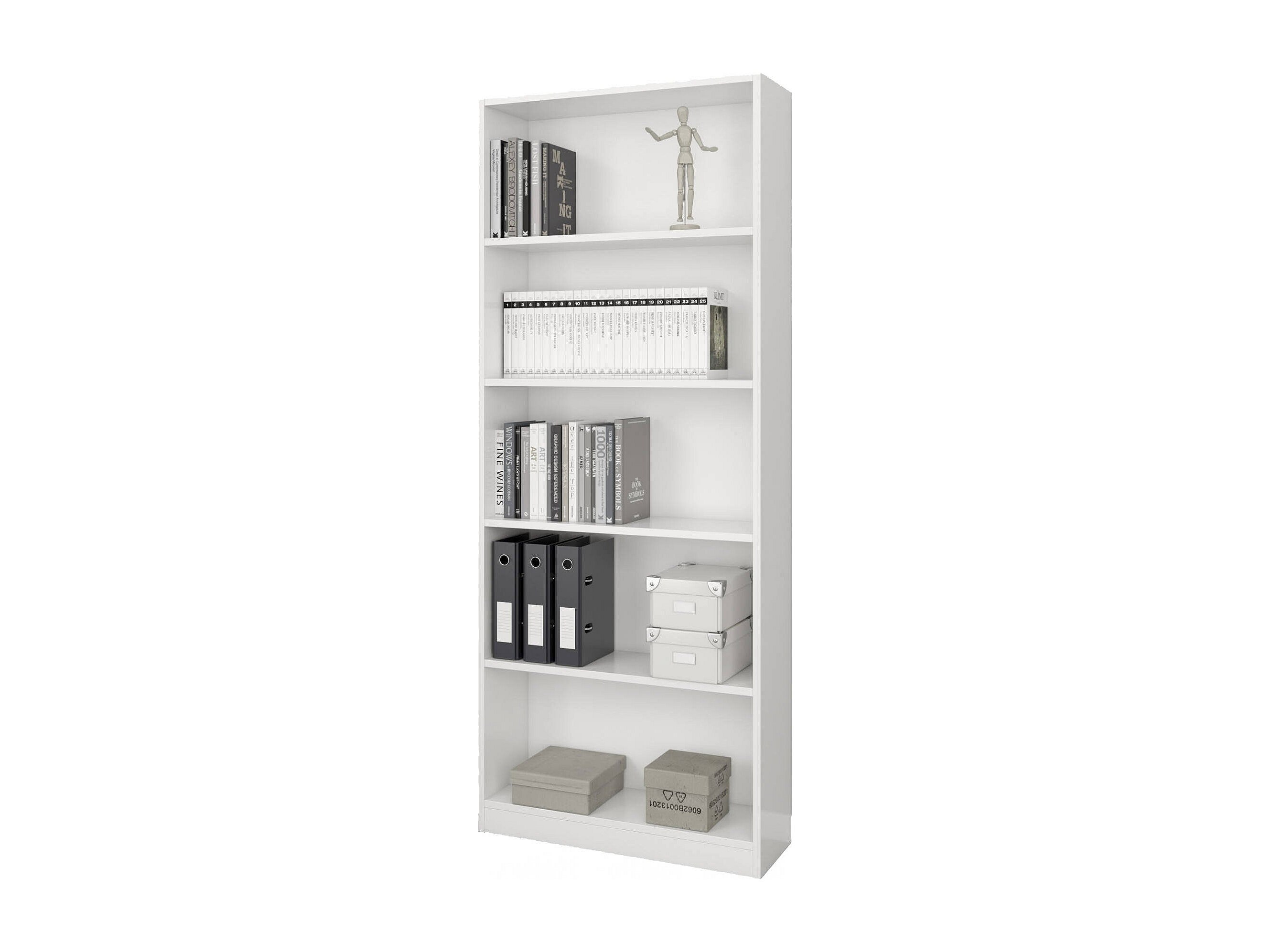 Bibliothèque Boston, Bibliothèque linéaire avec 4 étagères, Étagère de bureau ou de chambre, Bibliothèque moderne, 80x28h201 cm, Blanc