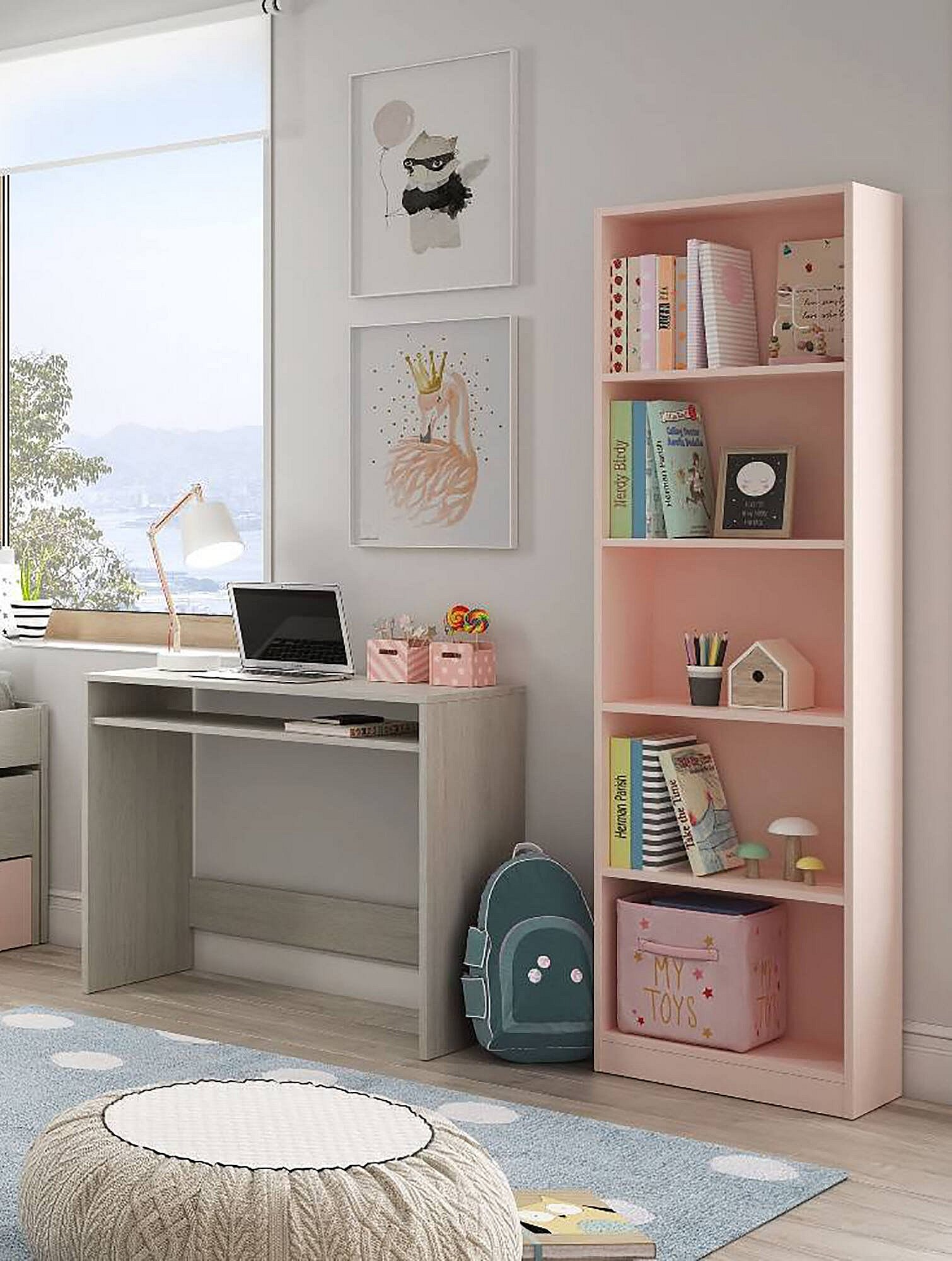 Bibliothèque avec 5 étagères couleur rose - Longueur 52 x Hauteur 180 x Profondeur 25 cm