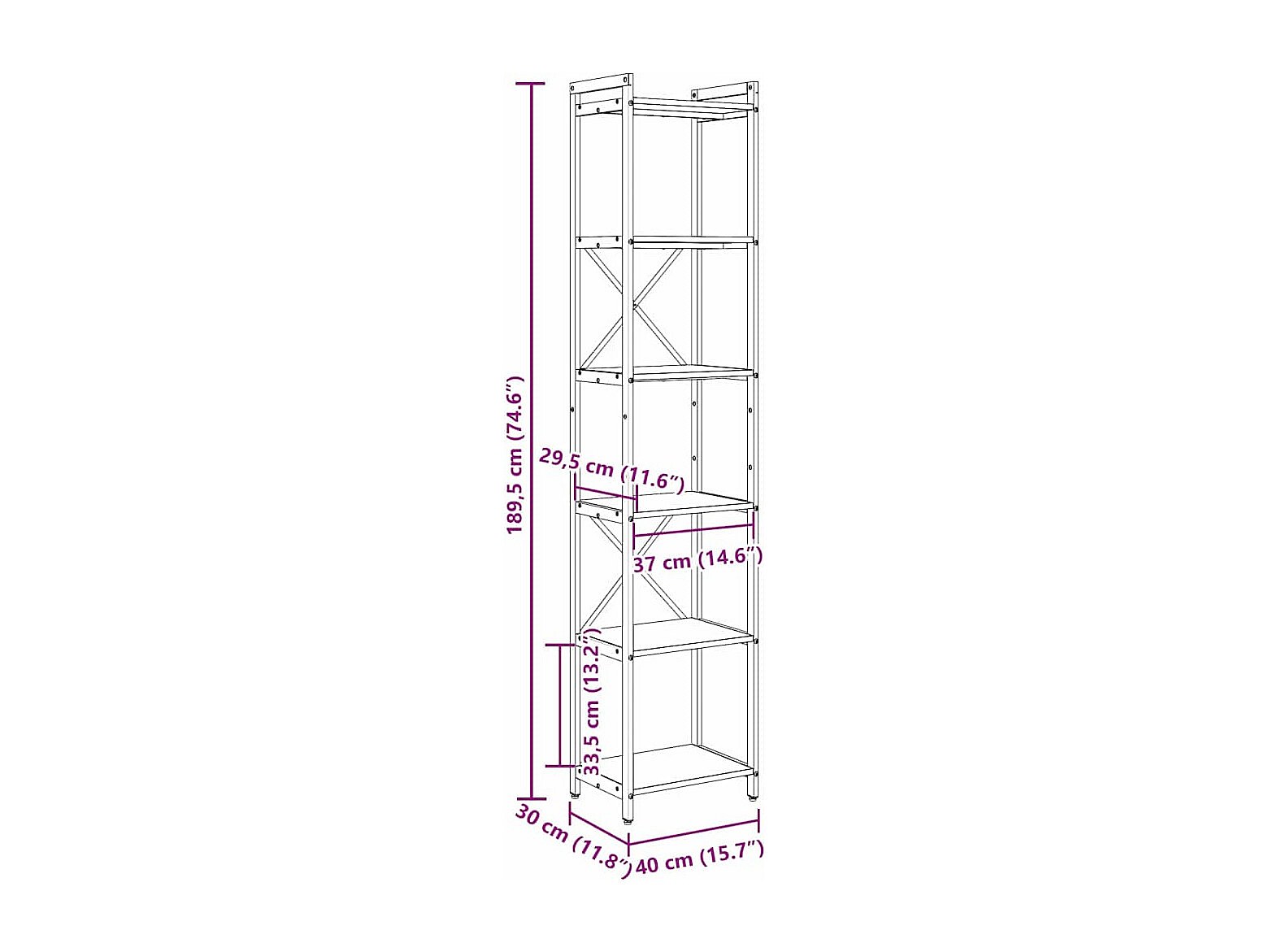 Bibliothèque à 6 niveaux sonoma gris 40x30x188 cm FR67415