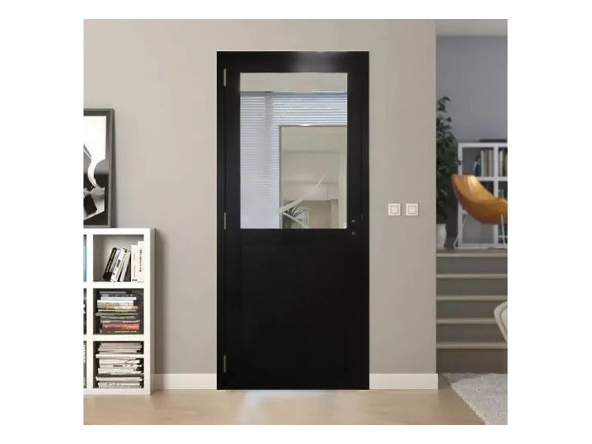 Bloc Porte Atelier Noir Sans Meneau H204 X L73 Poussant Droite Cotes Tableau Gd Menuiseries
