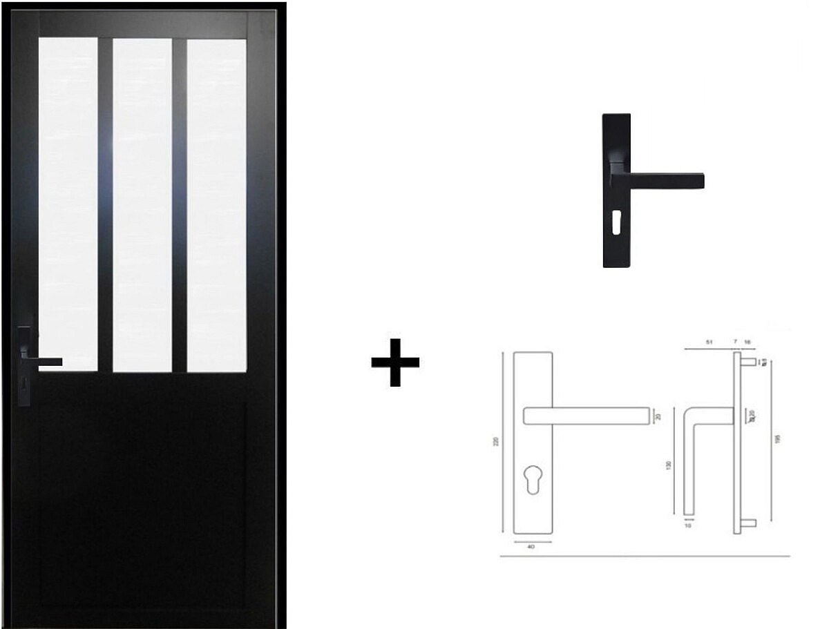Bloc Porte Atelier Noir Vitre Depoli H204 X L73 Poussant Droite Cotes Tableau +poignee Gd Menuiseries