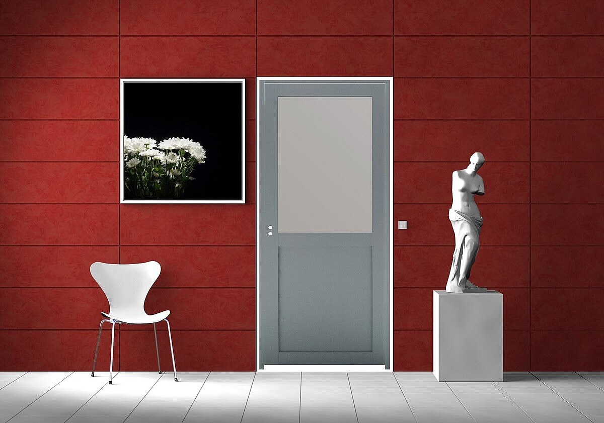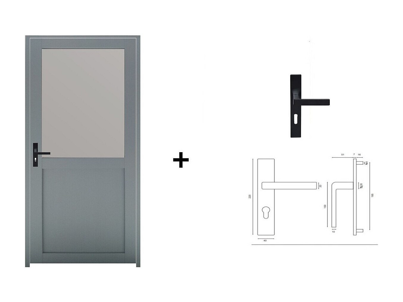 Bloc Porte Athena Ral7035 Vitree H204 X L83 Poussant Droite Cotes Tableau + Poignee Gd Menuiseries