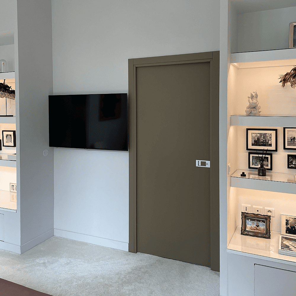 Bloc-porte Miro avec poignée Exclusive grise, H.204 x l.73 cm, aspect cuir lichen