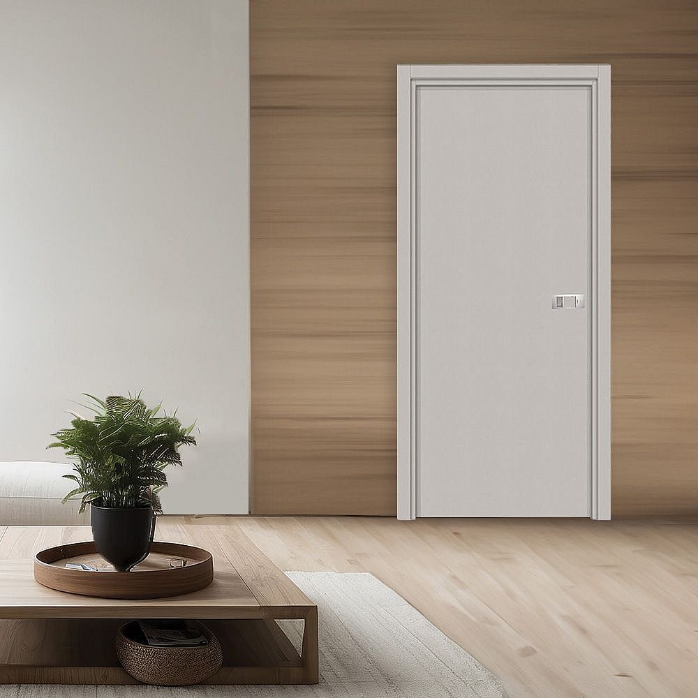 Bloc-porte Miro avec poignée Exclusive grise, H.204 x l.73 cm, aspect textile opale