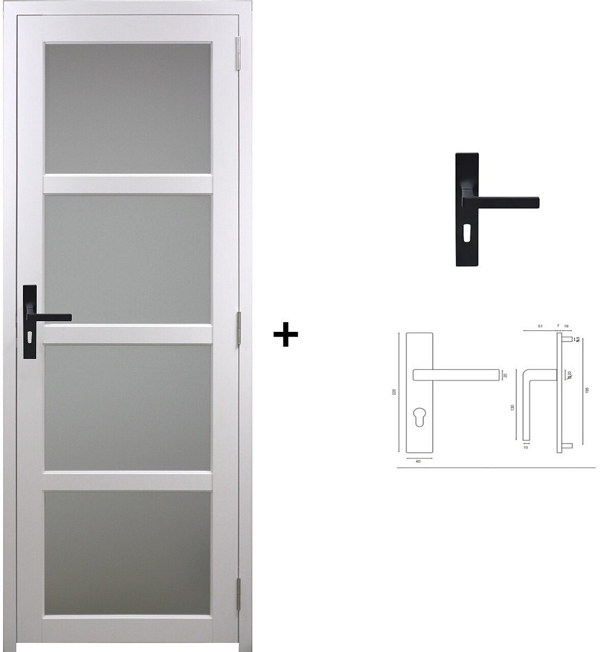 Bloc Porte Tana Vitree Blanc H204 X L83 Poussant Gauche Cotes Tableau + Poignee Gd Menuiseries