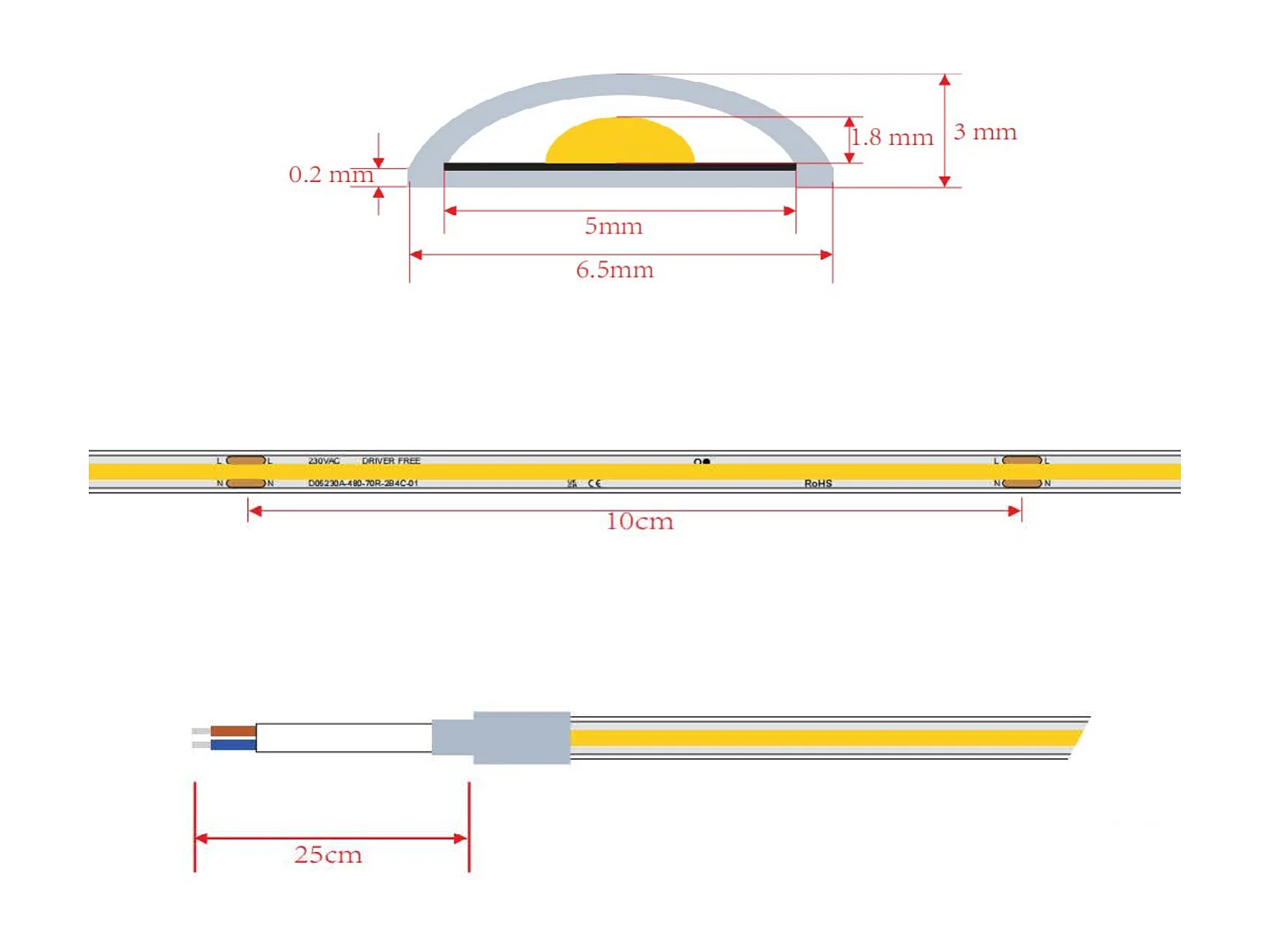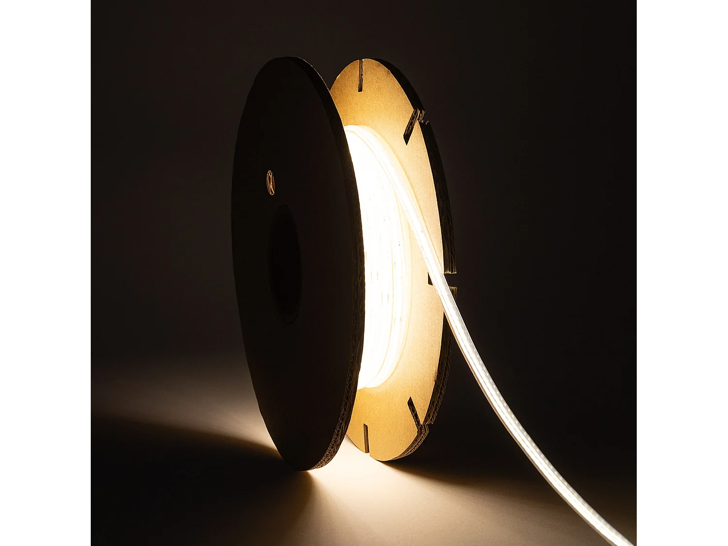 Ruban LED Dimmable 220V COB Auto-redressement 480 LED/m BOBINE 20m 12W/m 900lm/m Super Étroite Largeur 6.5mm Coupe 10cm IP65 4000K Blanc neutre