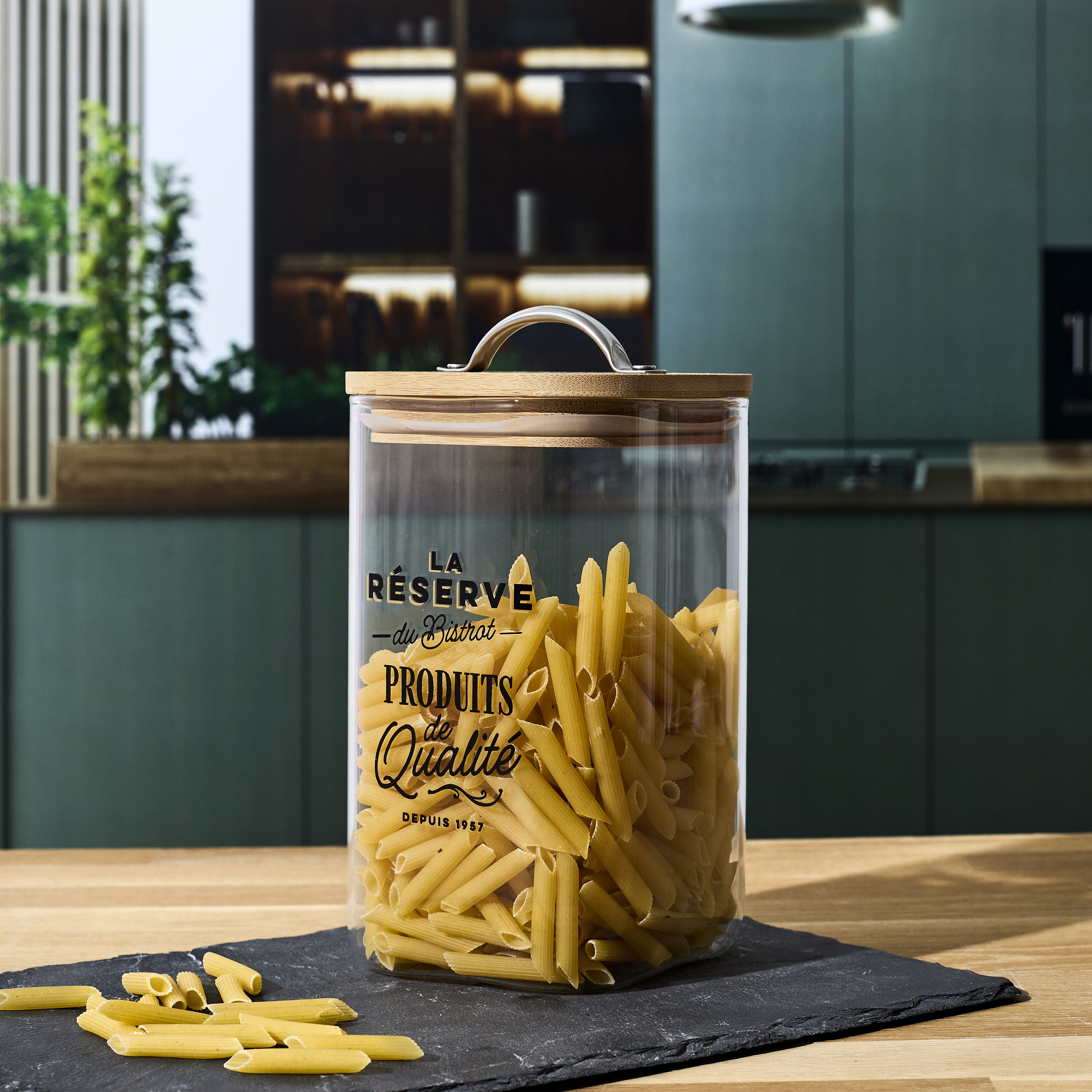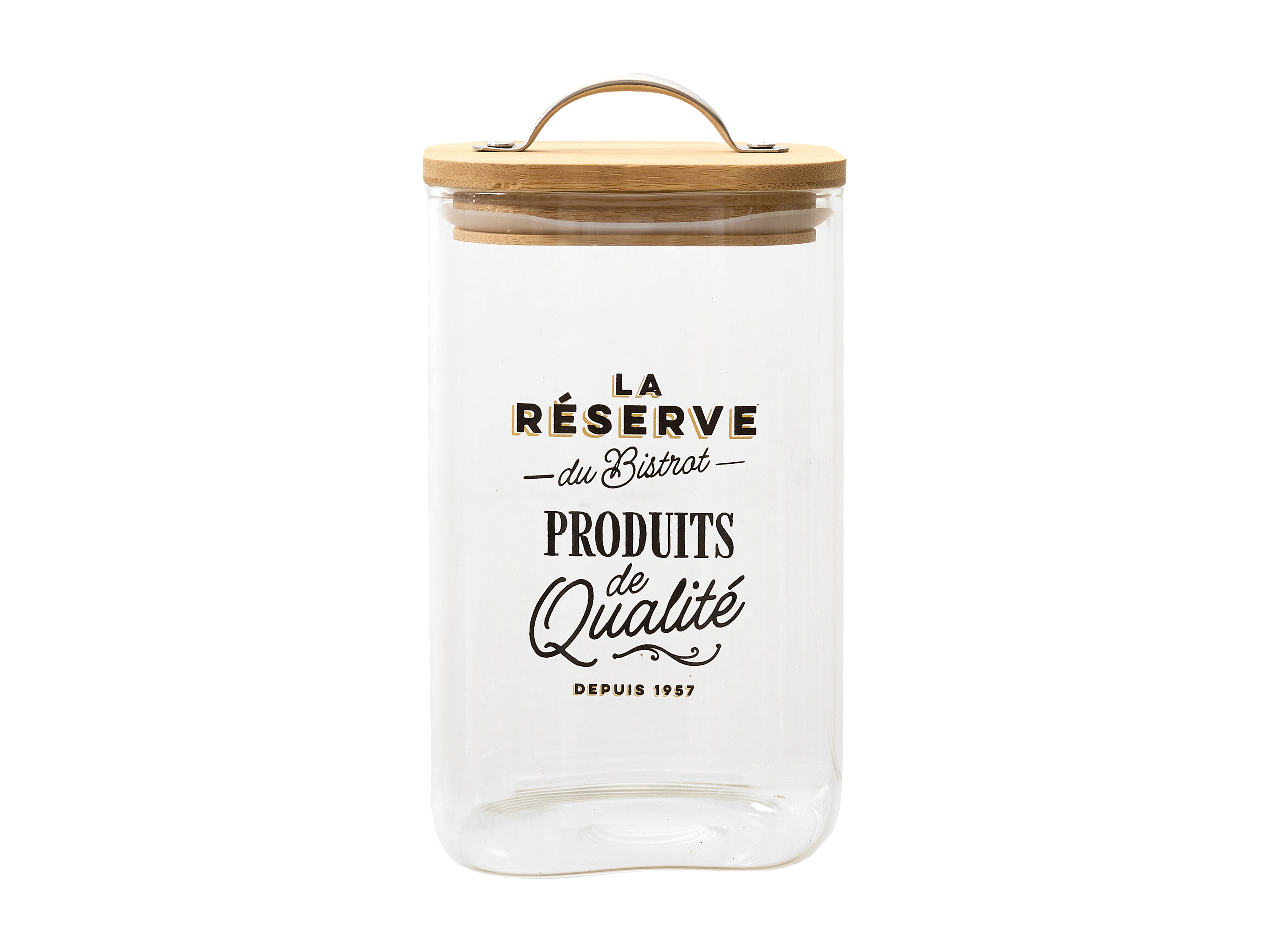 Bocal de 1L en verre avec couvercle en bambou style bistrot