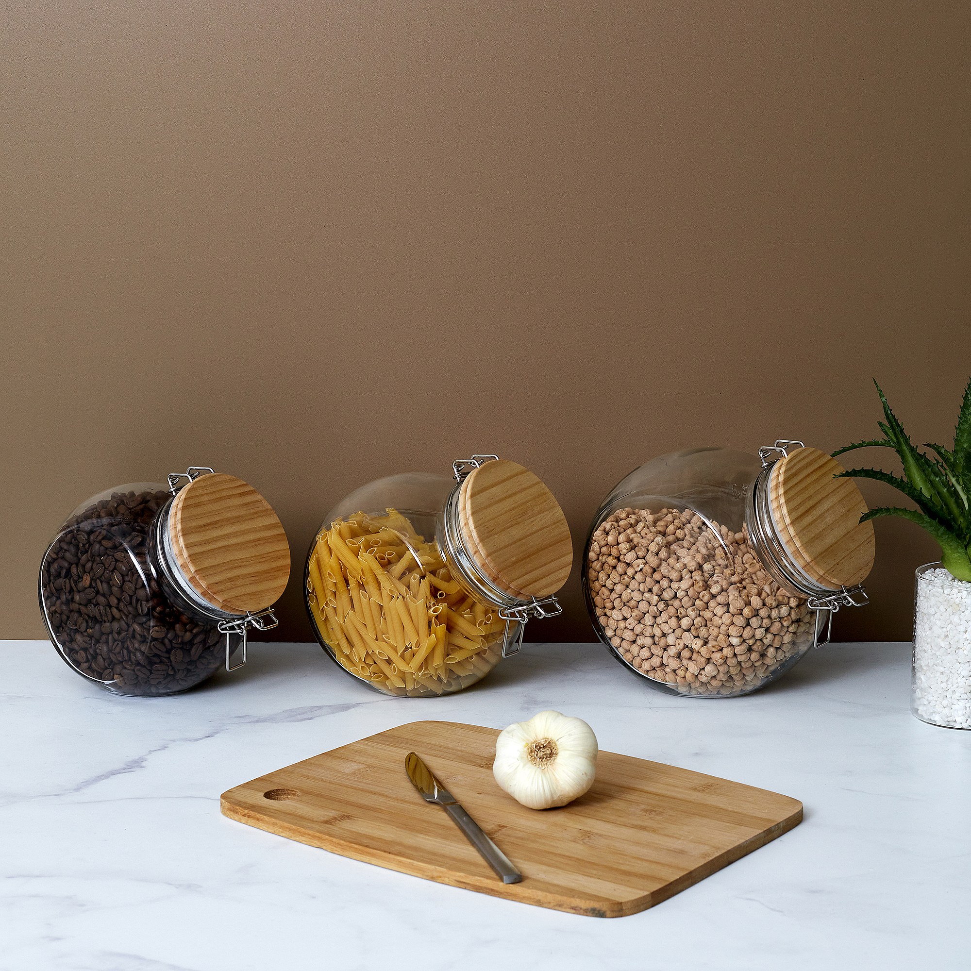 Bocal De Conservation Rond Couvercle Bois 2.2l Transparent, Marron