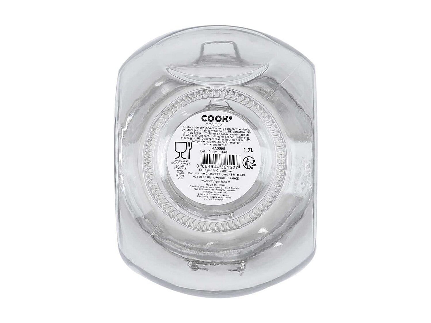 Bocal de Conservation Rond Incliné 1,7L en Verre Couvercle Bois