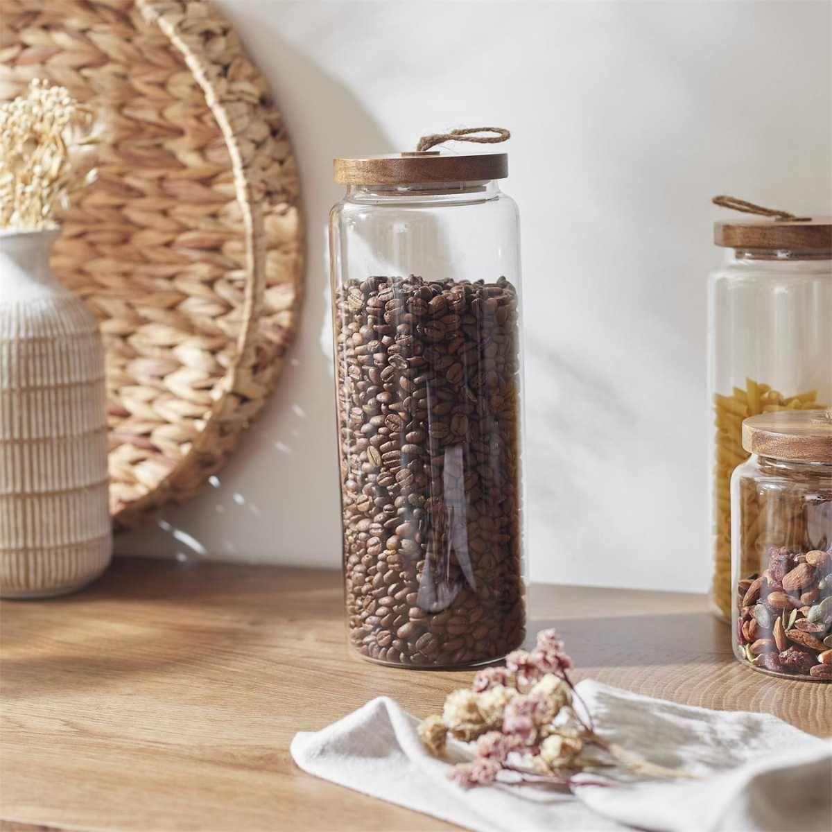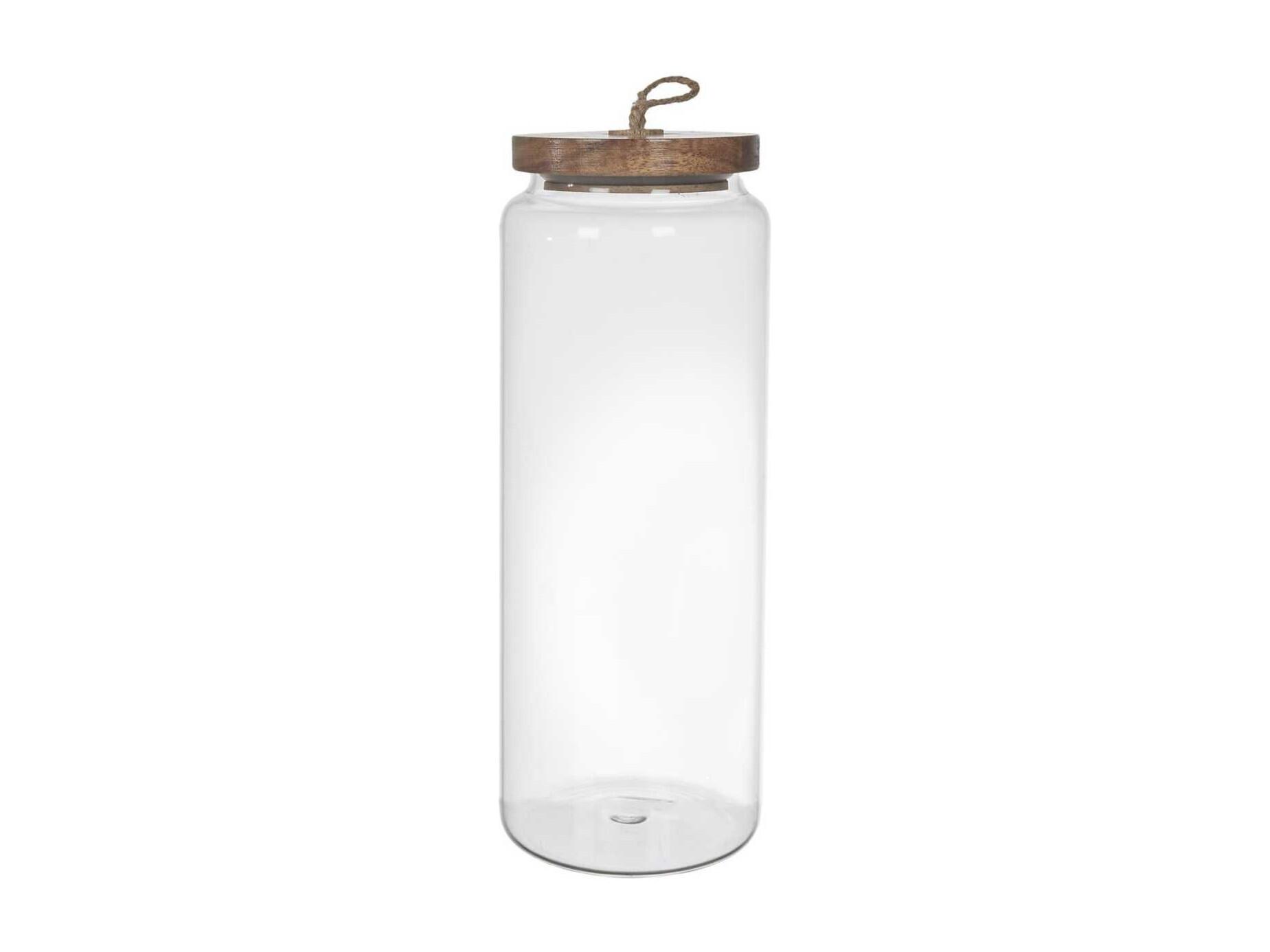 Bocal en Verre Transparent avec Couvercle Acacia H27,5cm / 185cl
