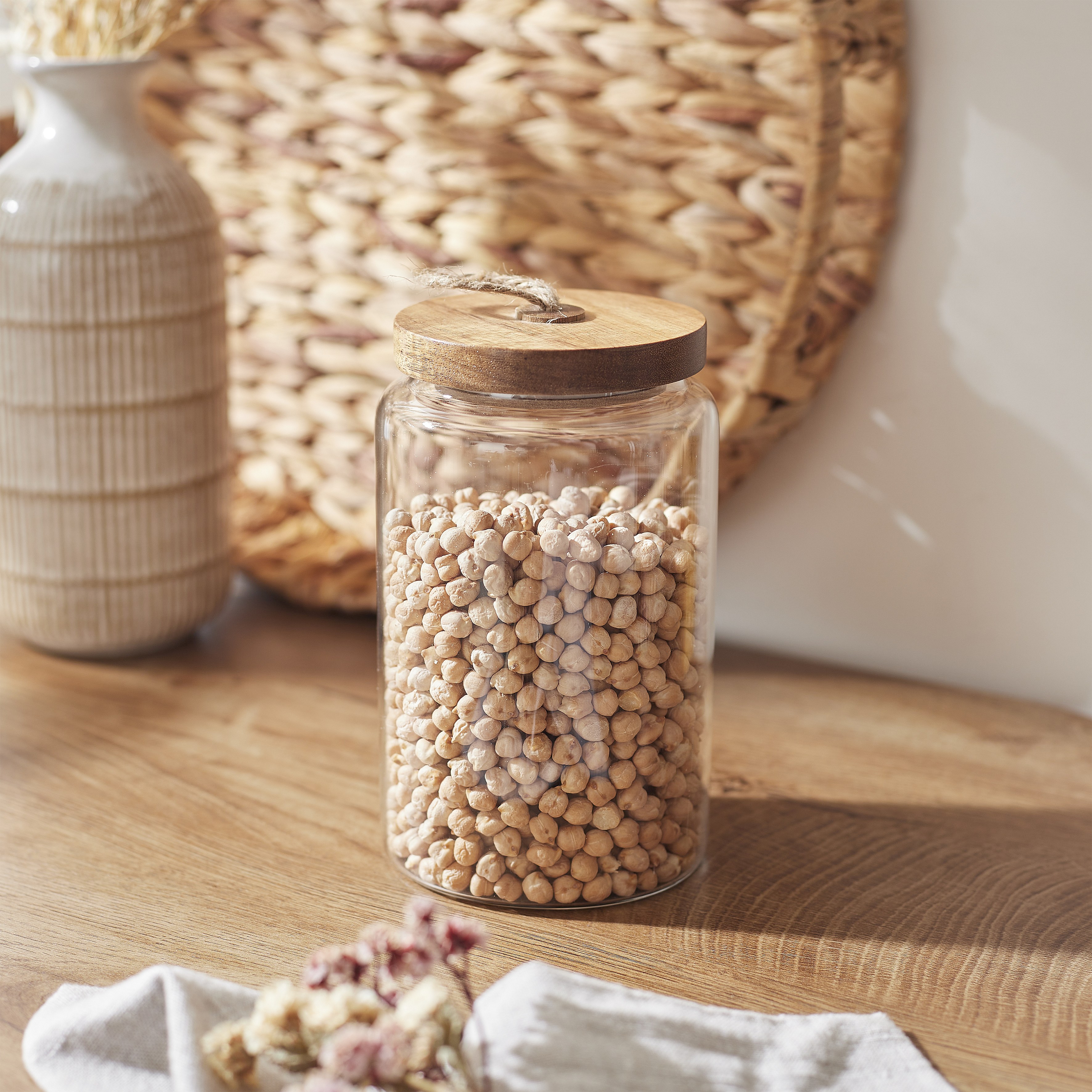 Bocal Verre Couvercle Acacia H17cm Transparent, Marron