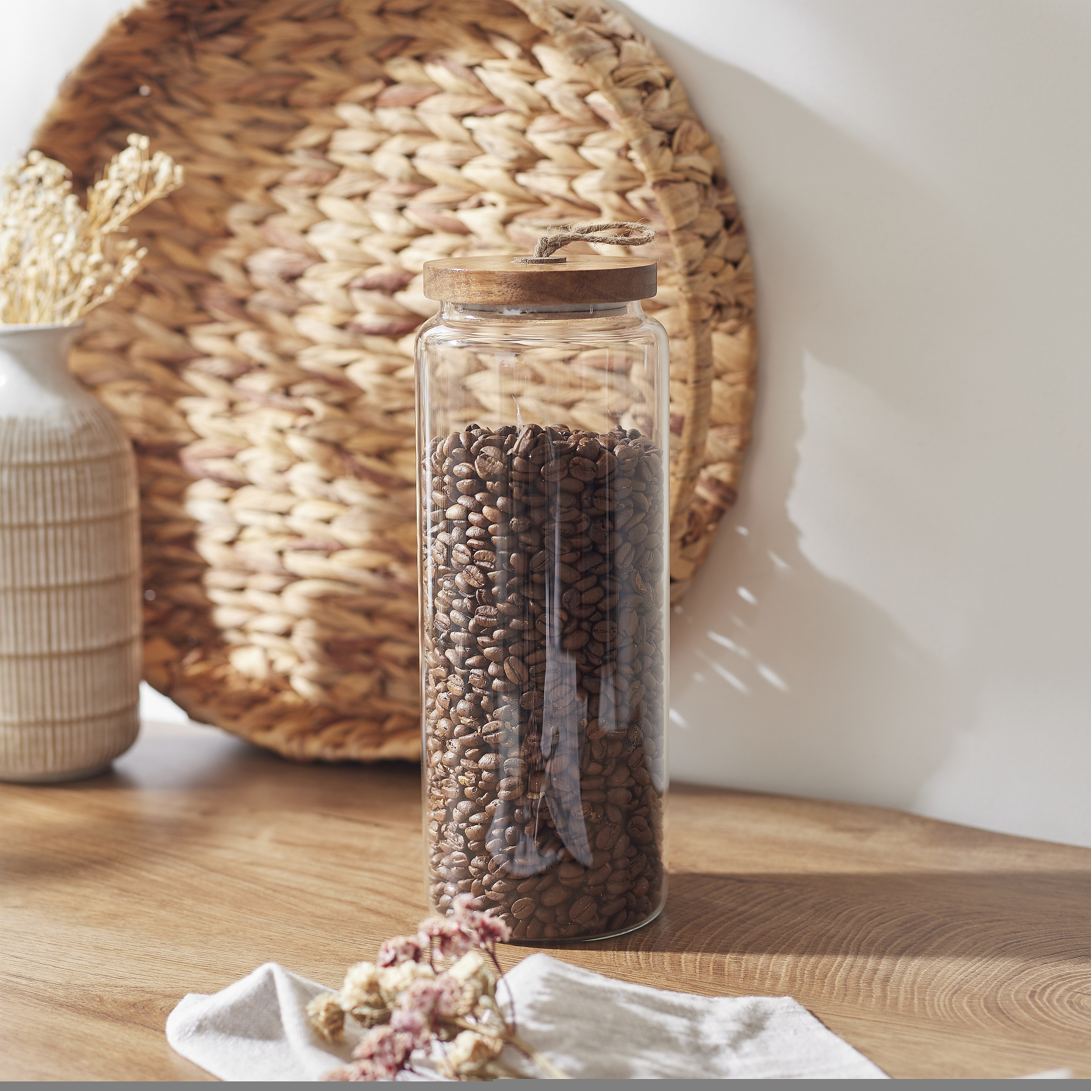 Bocal Verre Couvercle Acacia H27.5cm Transparent, Marron