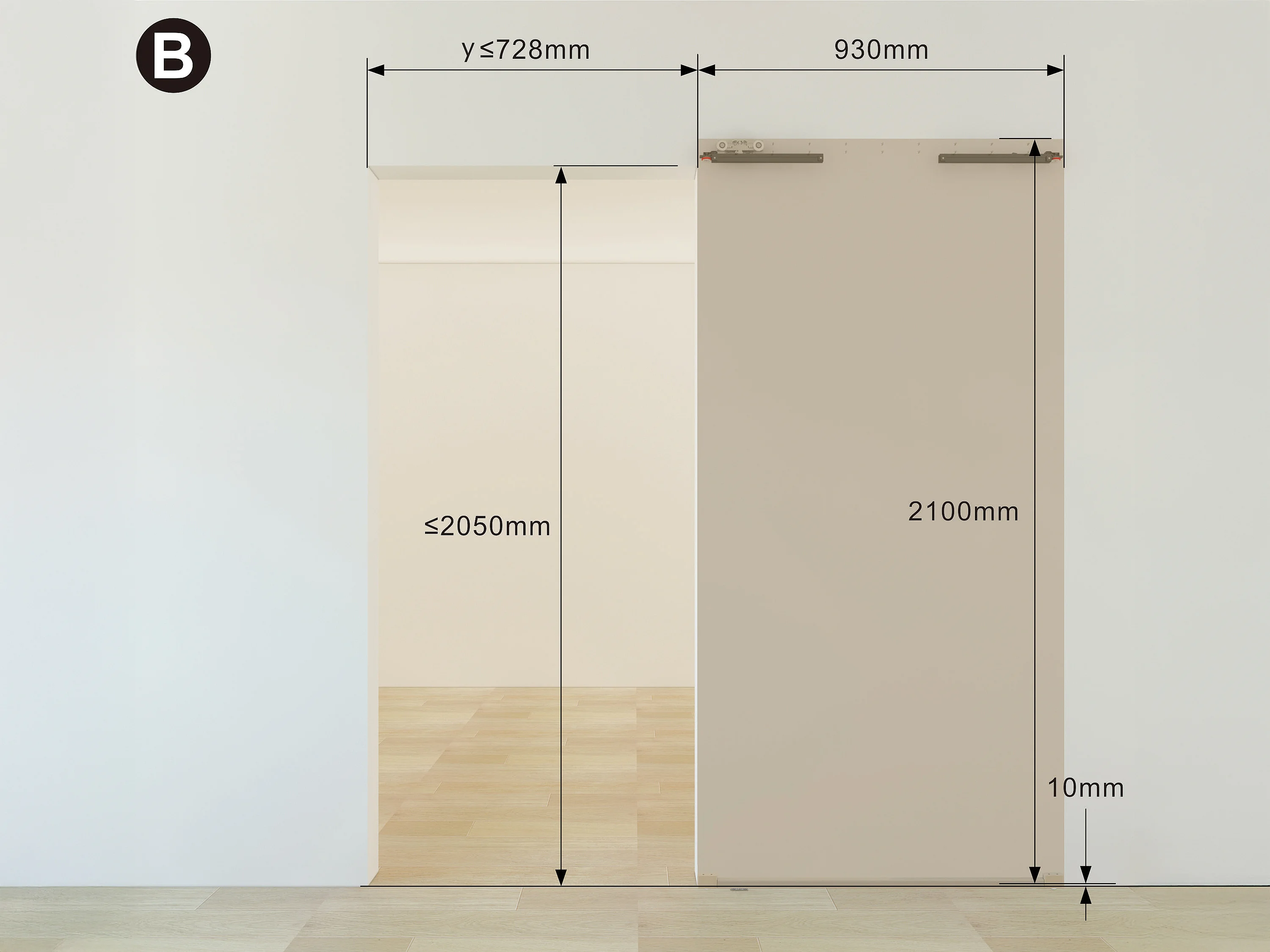 Porte coulissante en bois et MDF avec rail invisible - Chêne clair - 93 x 210 cm - BOCAZI