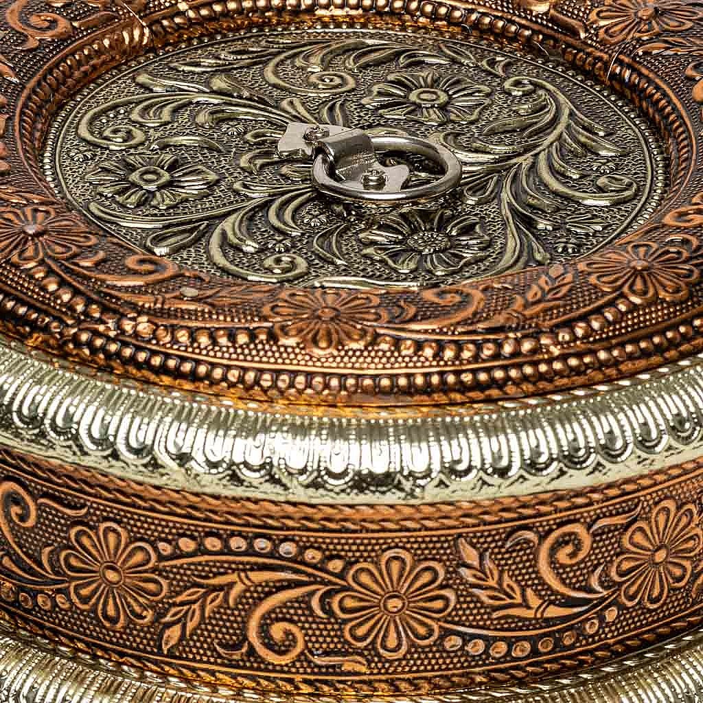 Boîte à bijoux en métal repoussé couleur bronze 20x20x6h