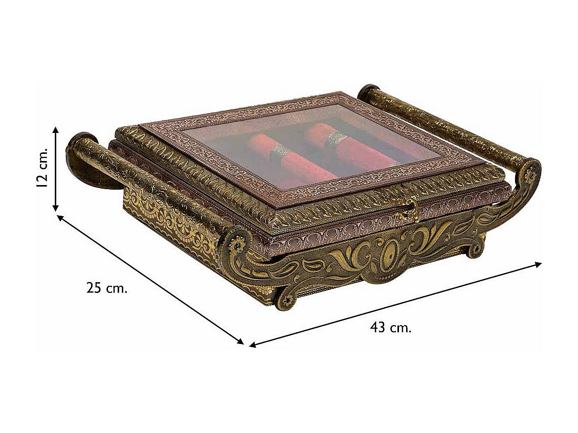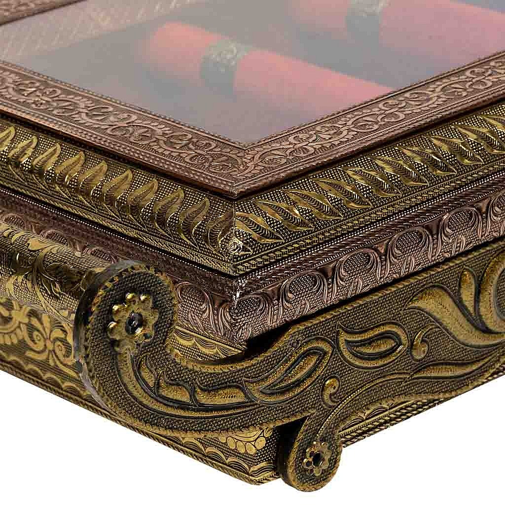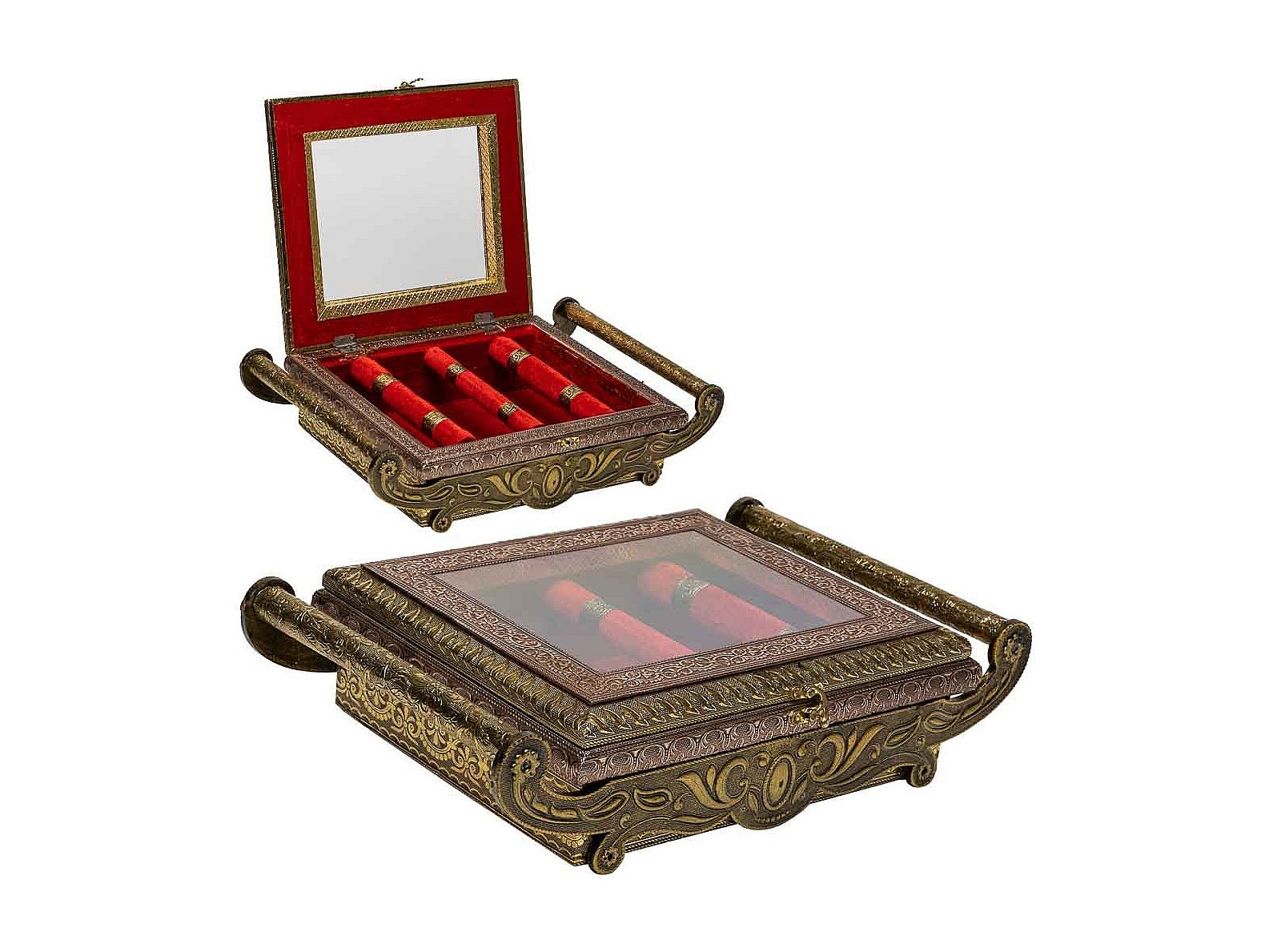 Boîte à bijoux en métal repoussé couleur cuivre 43x25x12h
