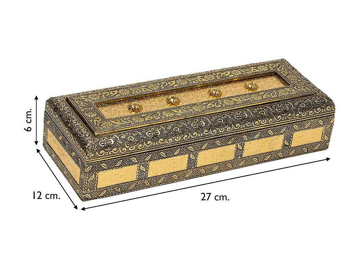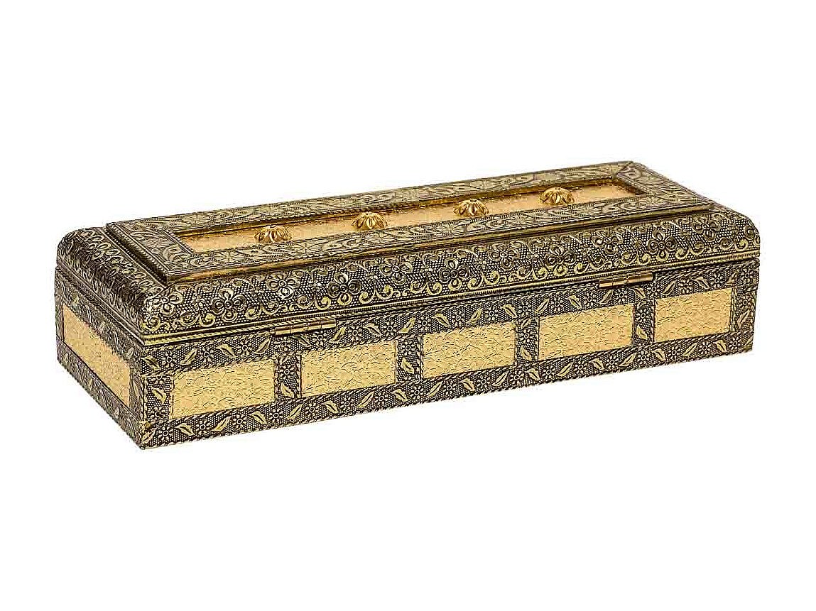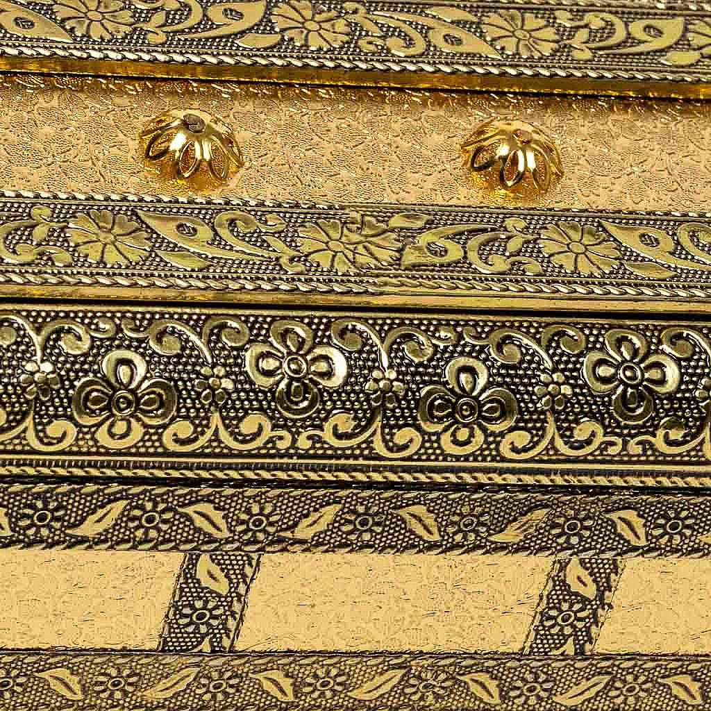 Boîte à bijoux en métal repoussé doré 27x12x6h