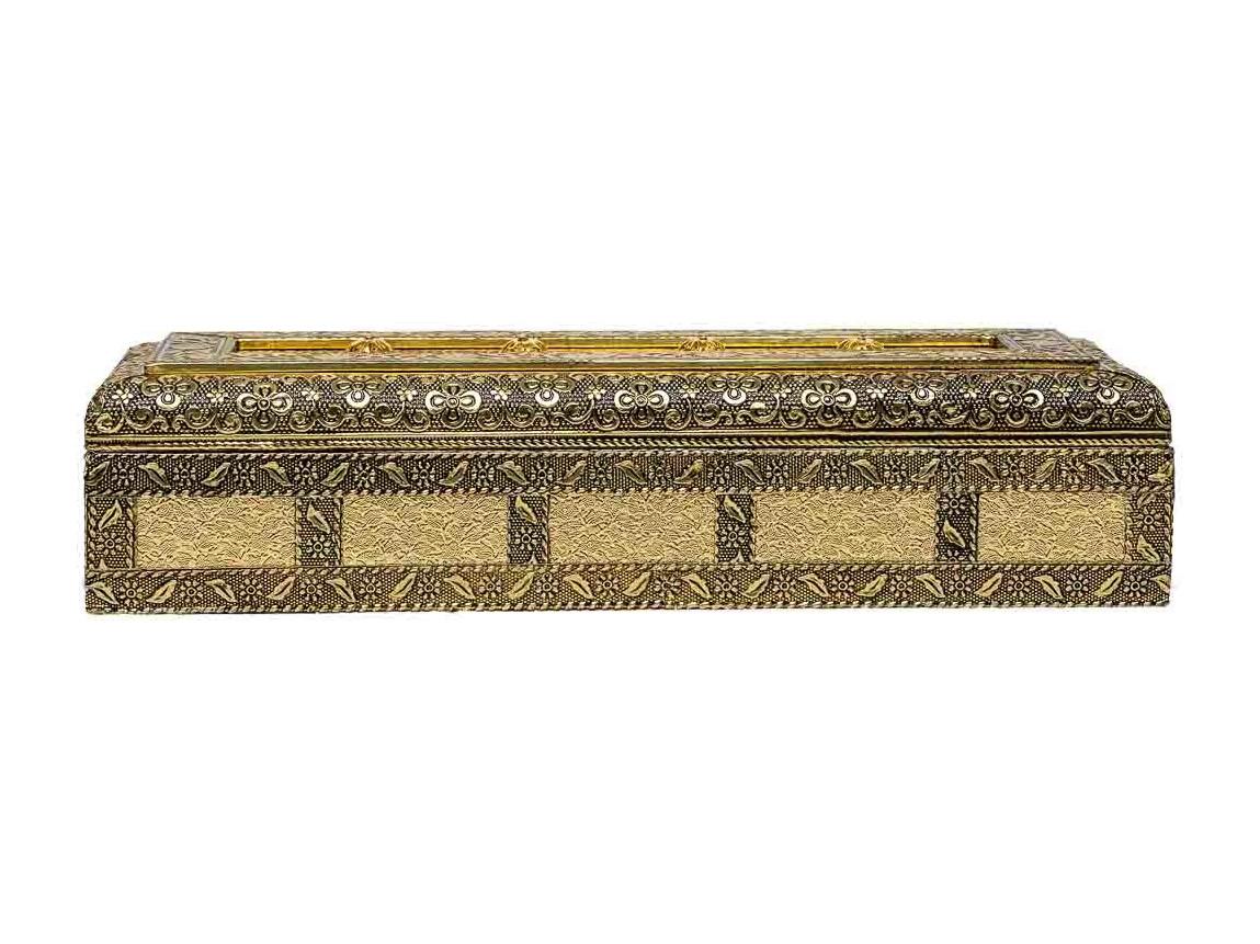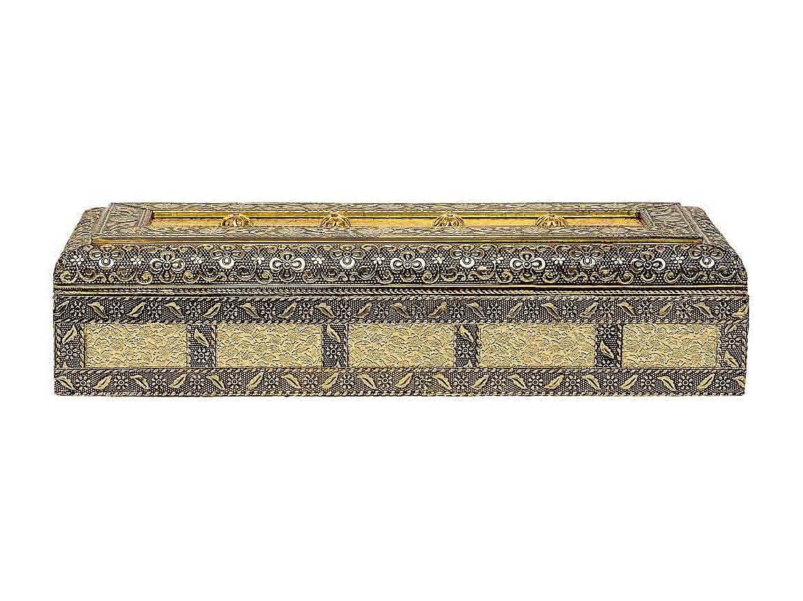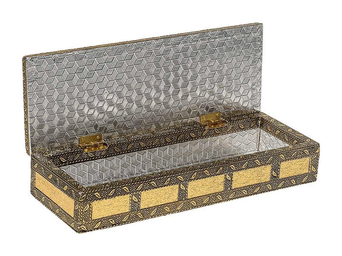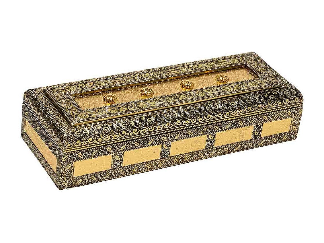 Boîte à bijoux en métal repoussé doré 27x12x6h