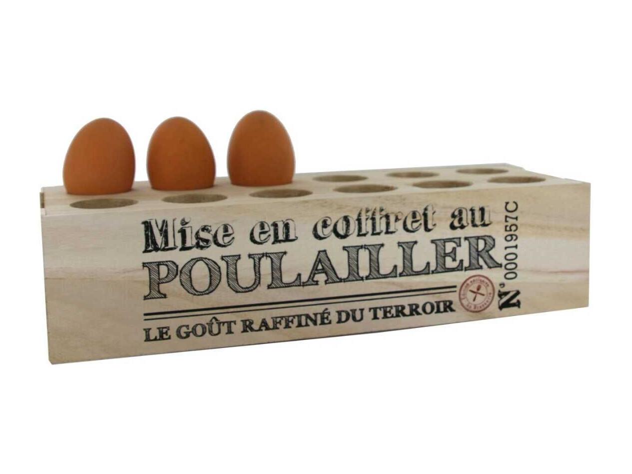 Boîte à œufs en bois avec 12 emplacements et message décoratif