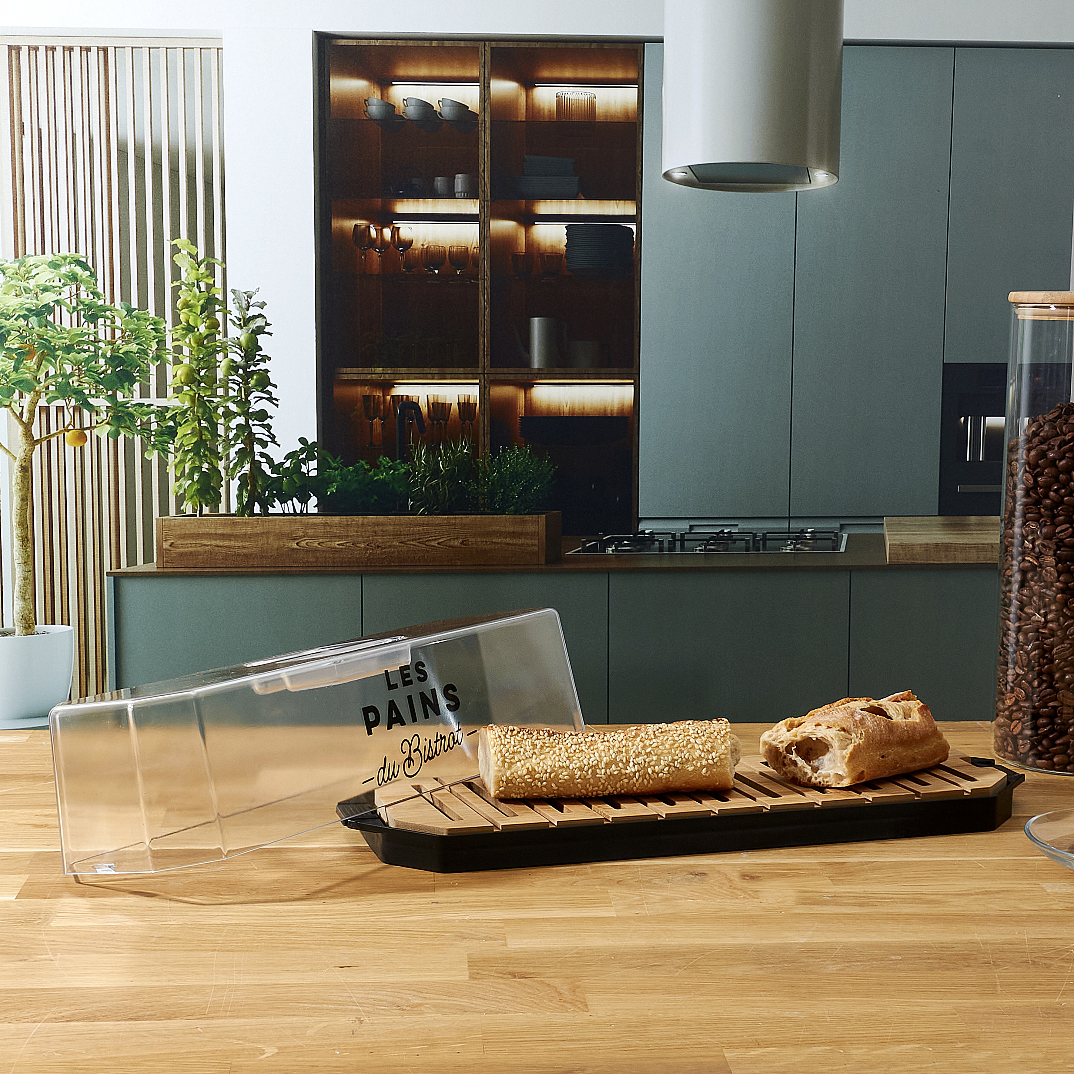 Boite A Pain Couvercle Transparent Bistrot Transparent, Noir, Marron