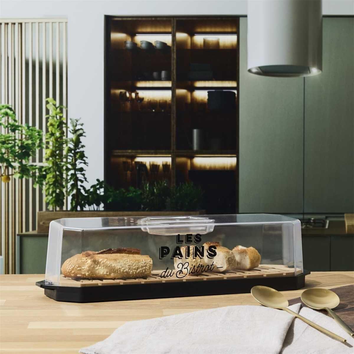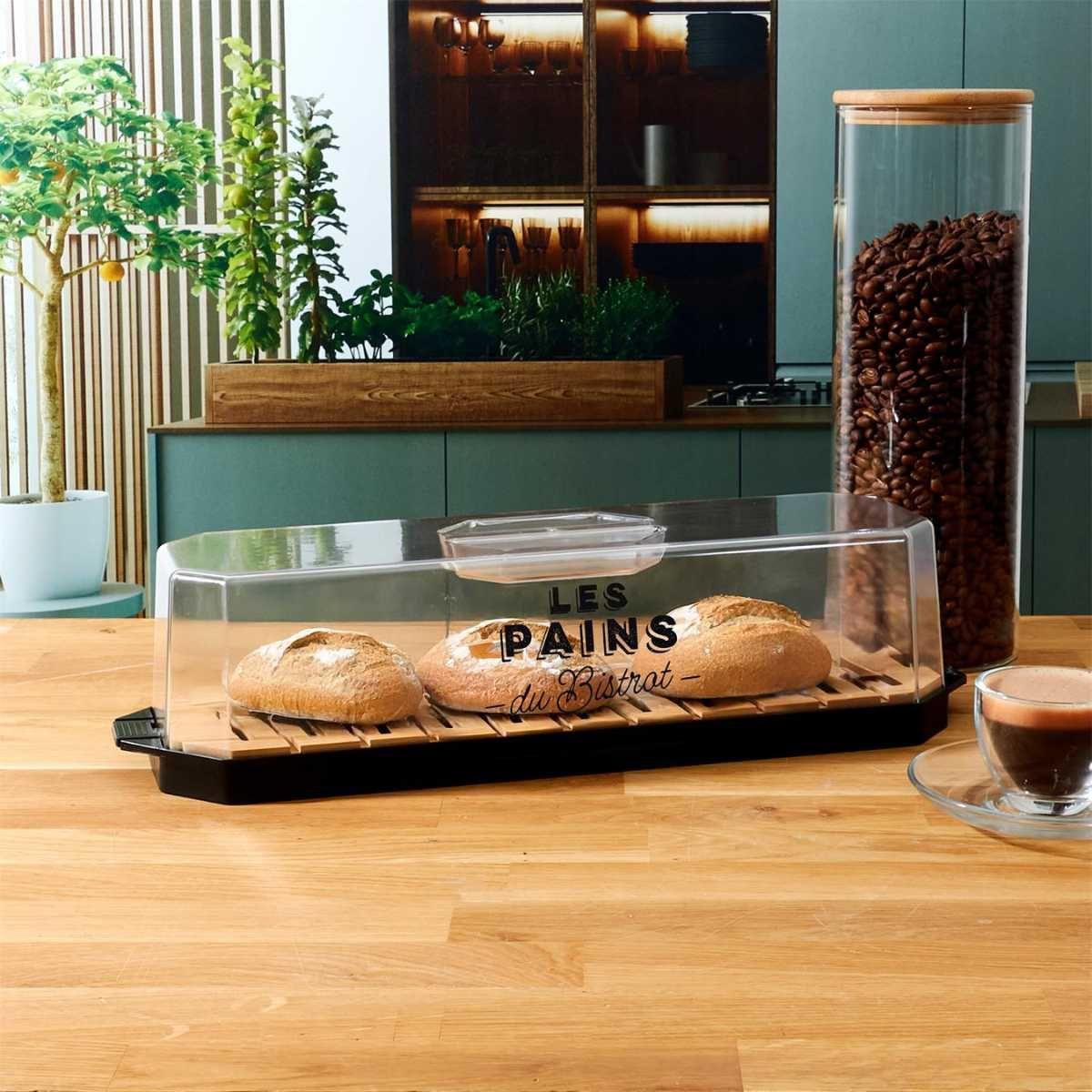 Boite A Pain Couvercle Transparent Bistrot Transparent, Noir, Marron