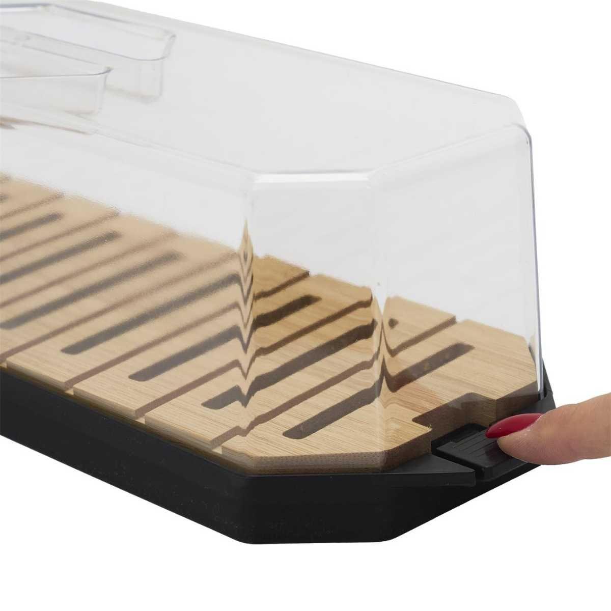 Boîte à pain en plastique avec base en bambou faisant guide de coupe