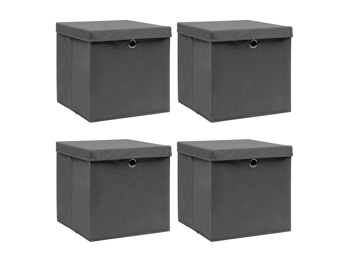Boîtes de rangement avec couvercle 4 pcs Gris 32x32x32 cm Tissu