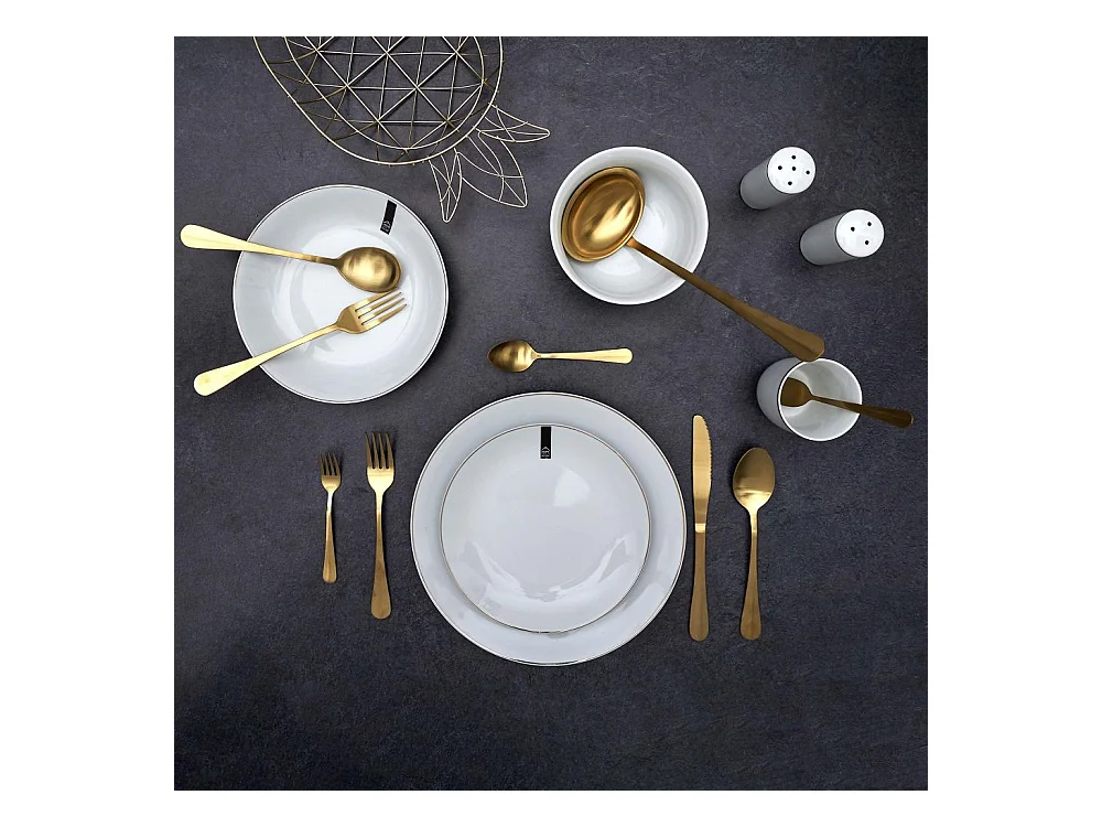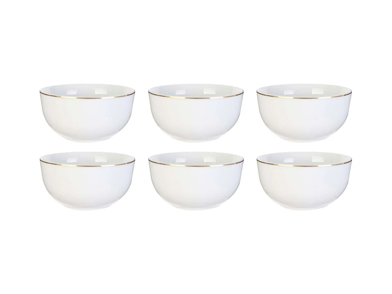 Set de 6 bols blancs en porcelaine avec liseré doré (50cl) - AURA