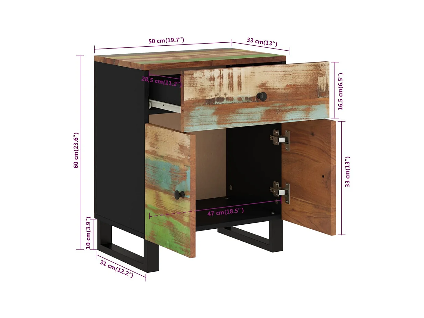 Runar Table de chevet 50x33x60cm Bois de récupération et d'ingénierie